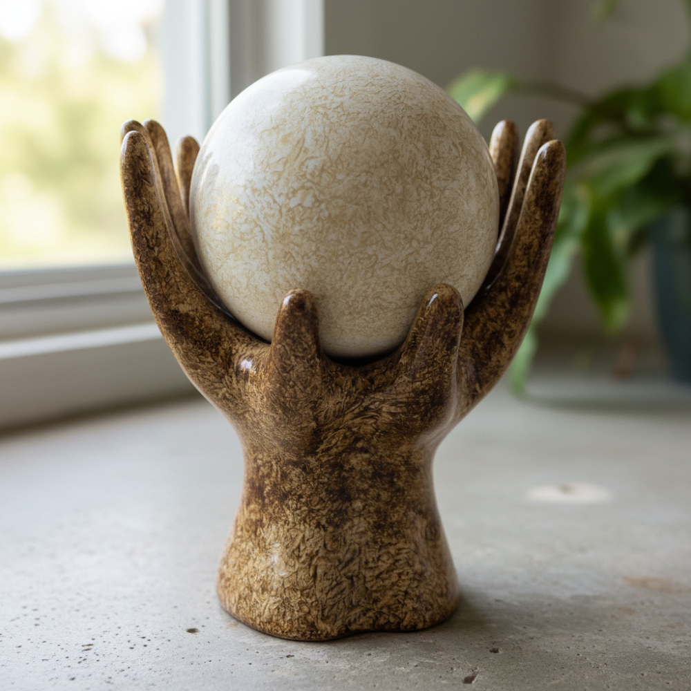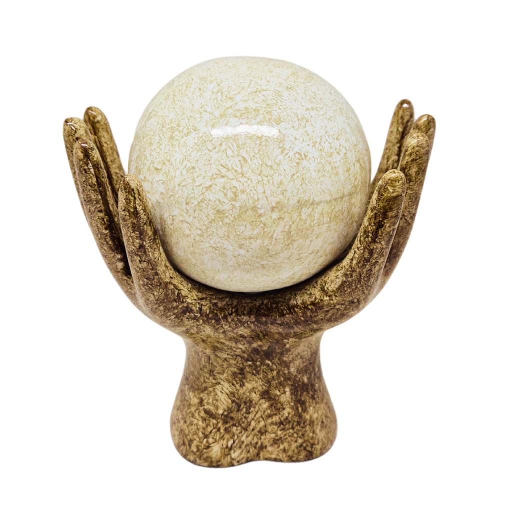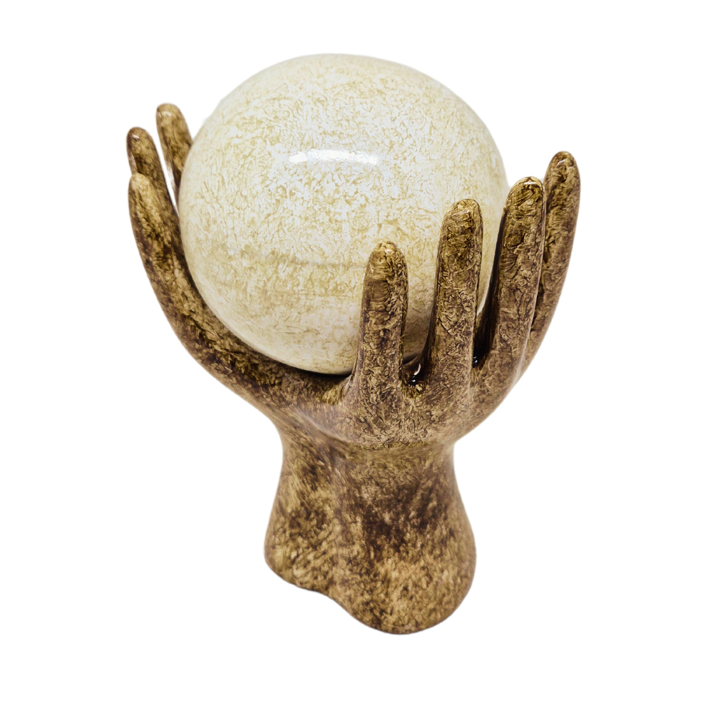 Estatueta Mão com Esfera Enfeite de Cerâmica Decoração Rack Sala Escritório