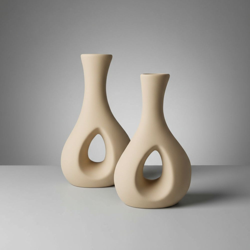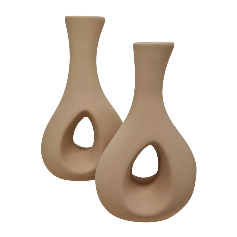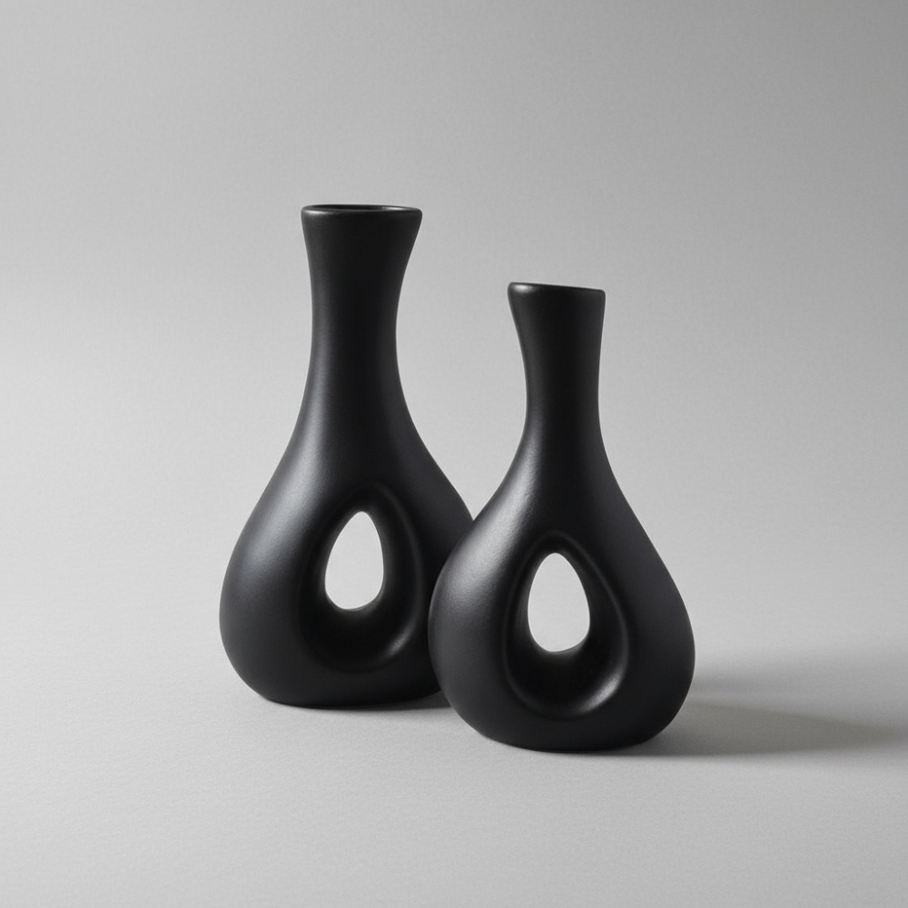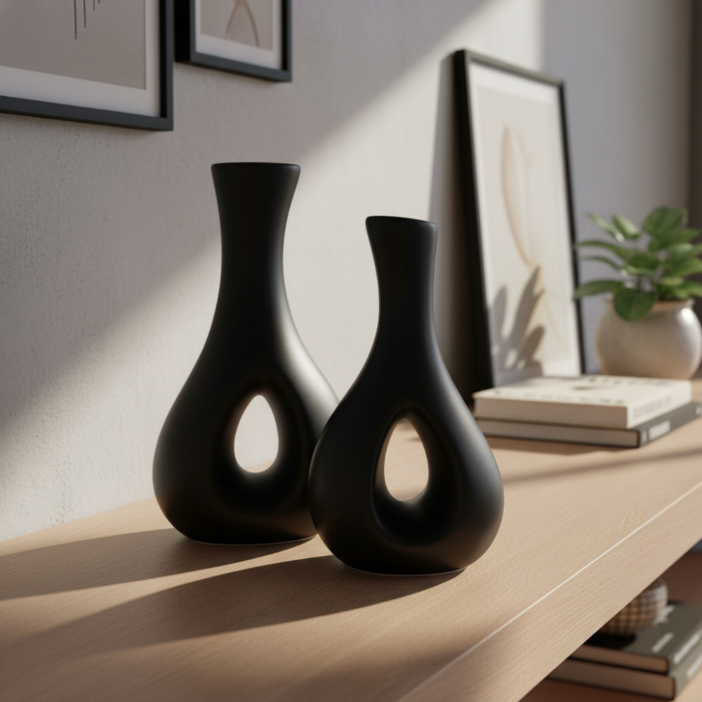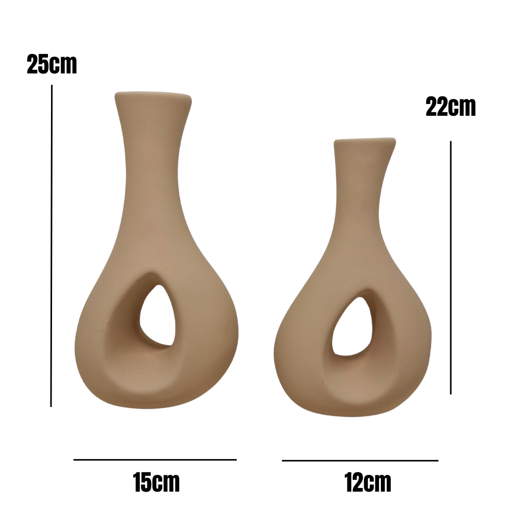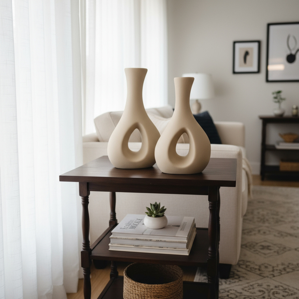 Enfeite Rack Sala Dupla de Vasos Decorativos Vaso de Cerâmica