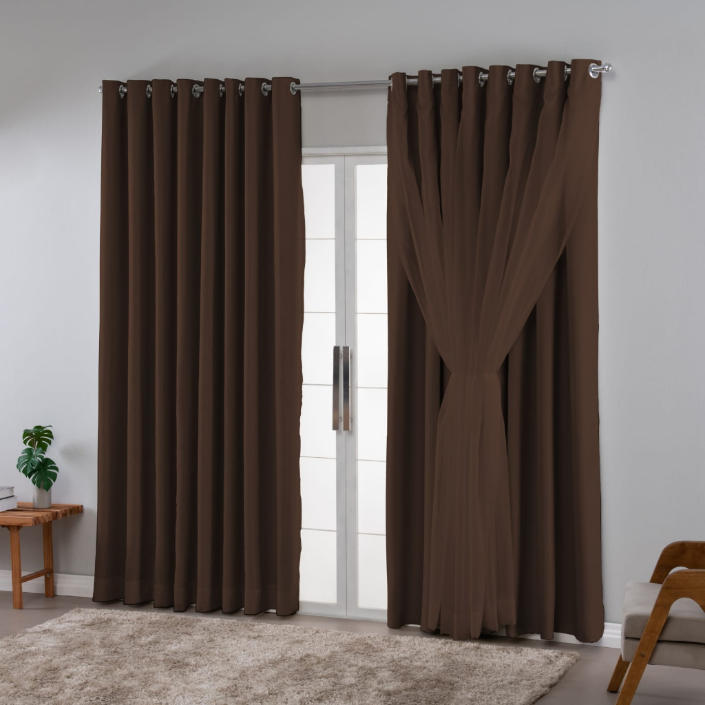 cortina blackout tecido com voil 2.50x2.40 sala/quarto