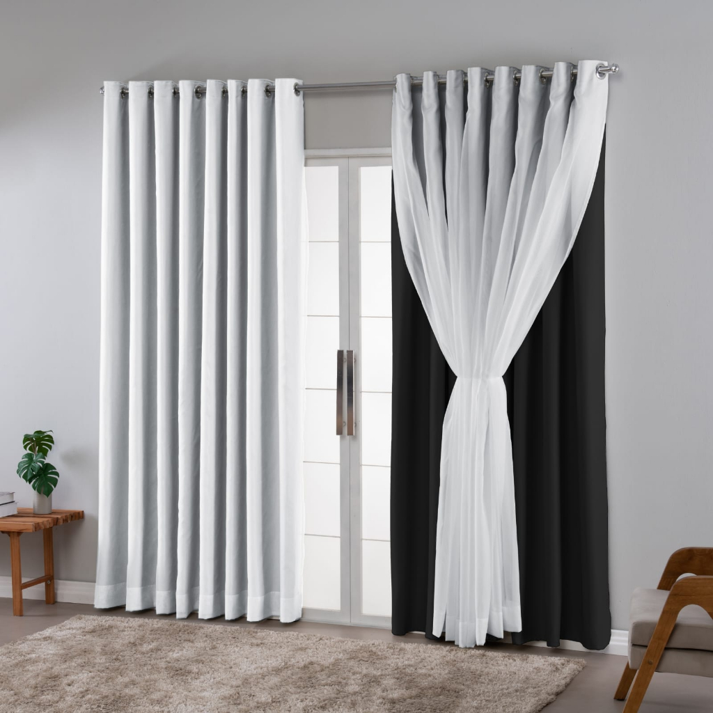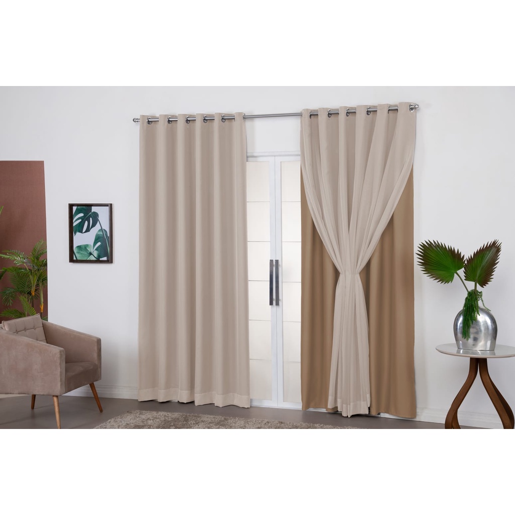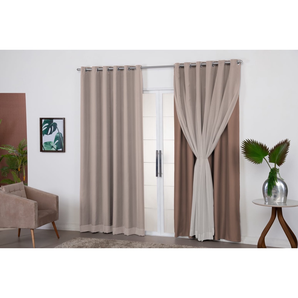 Cortina Blackout Em Tecido Com Voil 2.50x2.60 Para Varão Sala Quarto