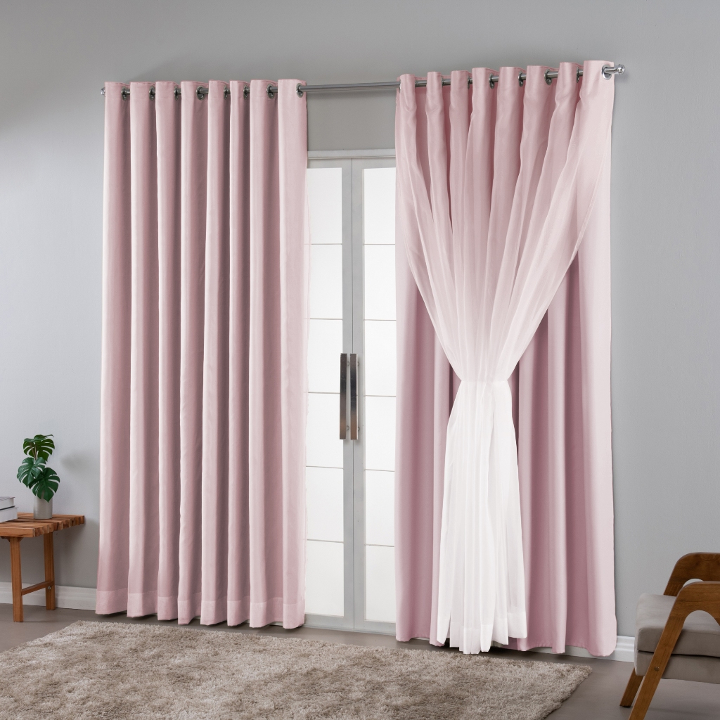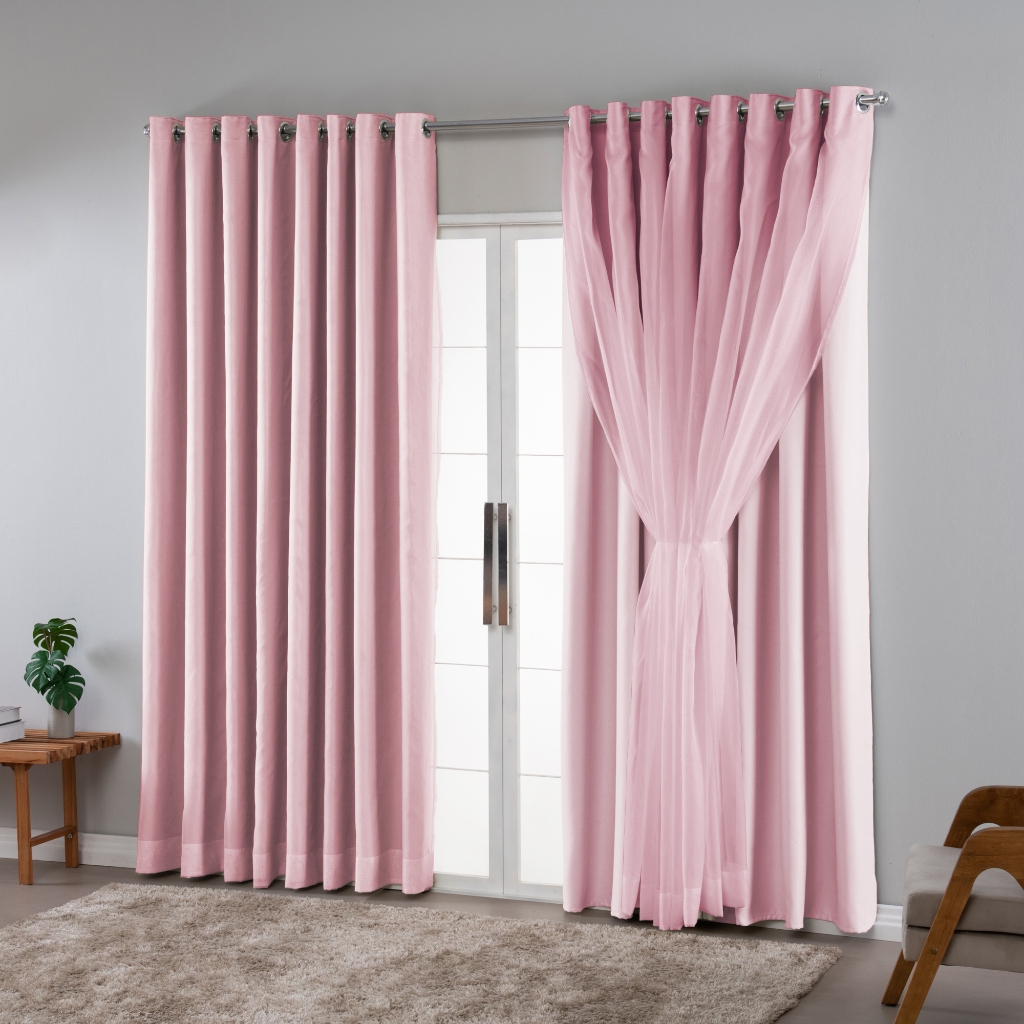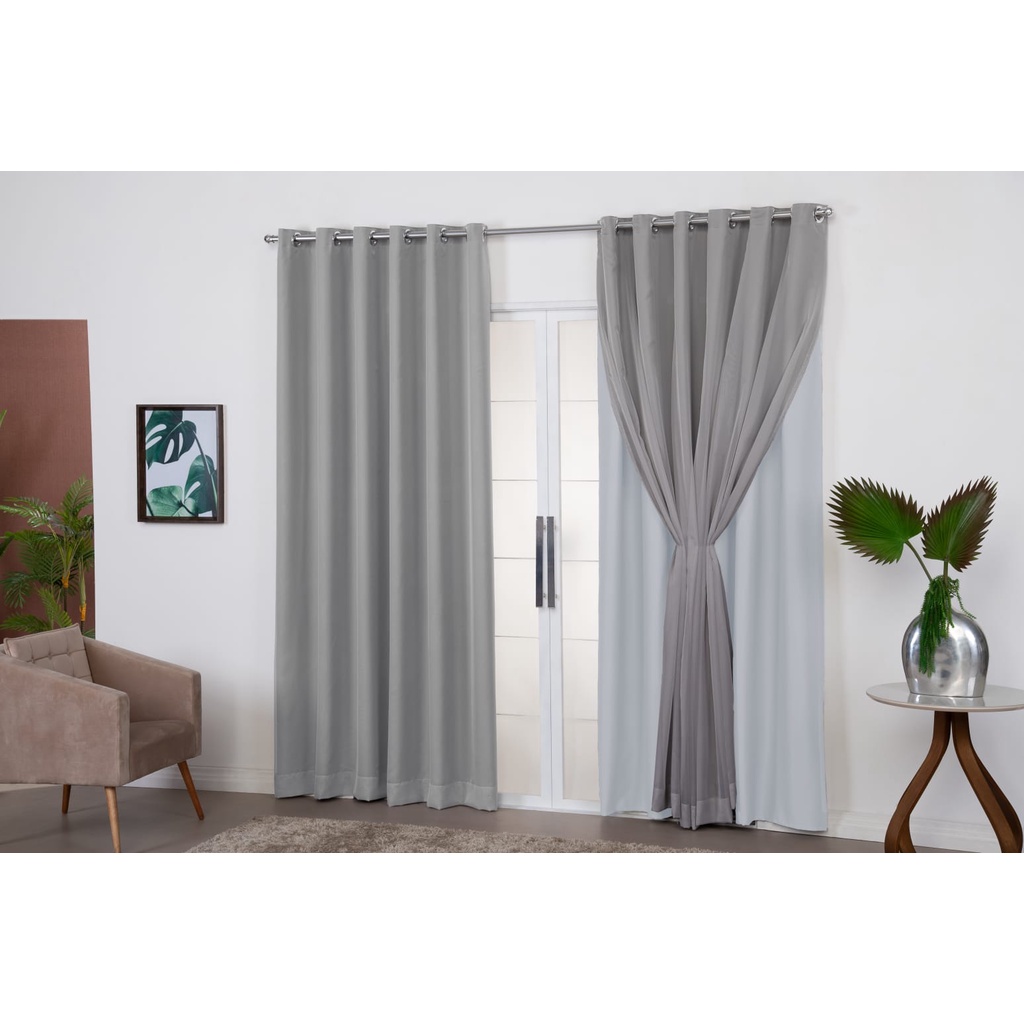 Cortina Blackout Em Tecido Com Voil 2.50x2.60 Para Varão Sala Quarto