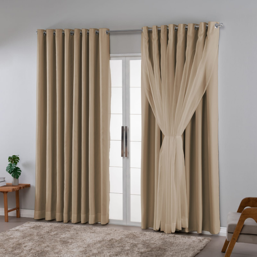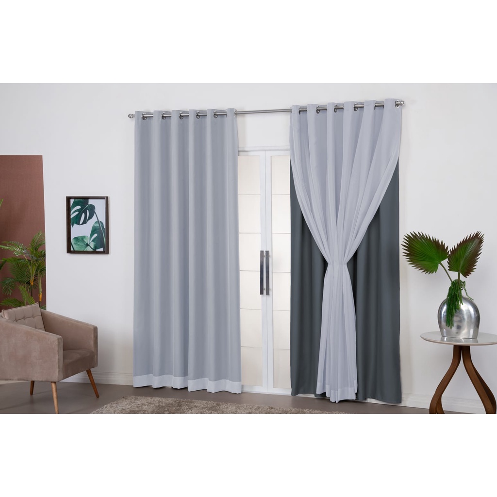 Cortina Blackout Em Tecido Com Voil 3.00x2.50 Para Varão Sala Quarto