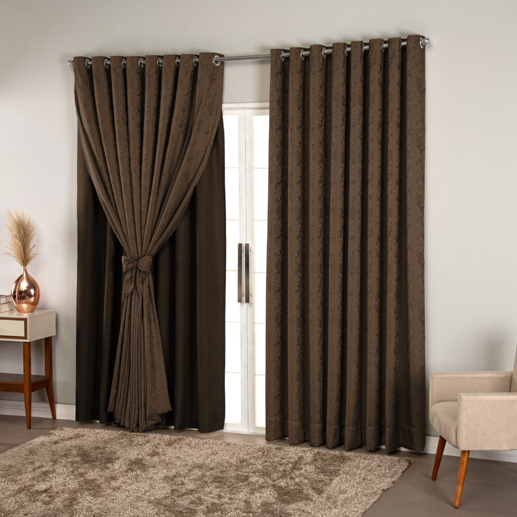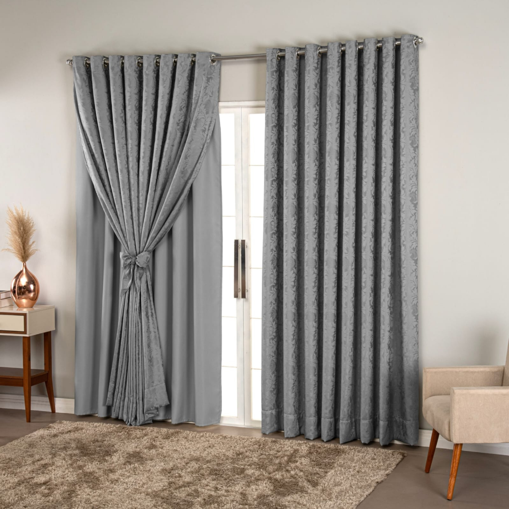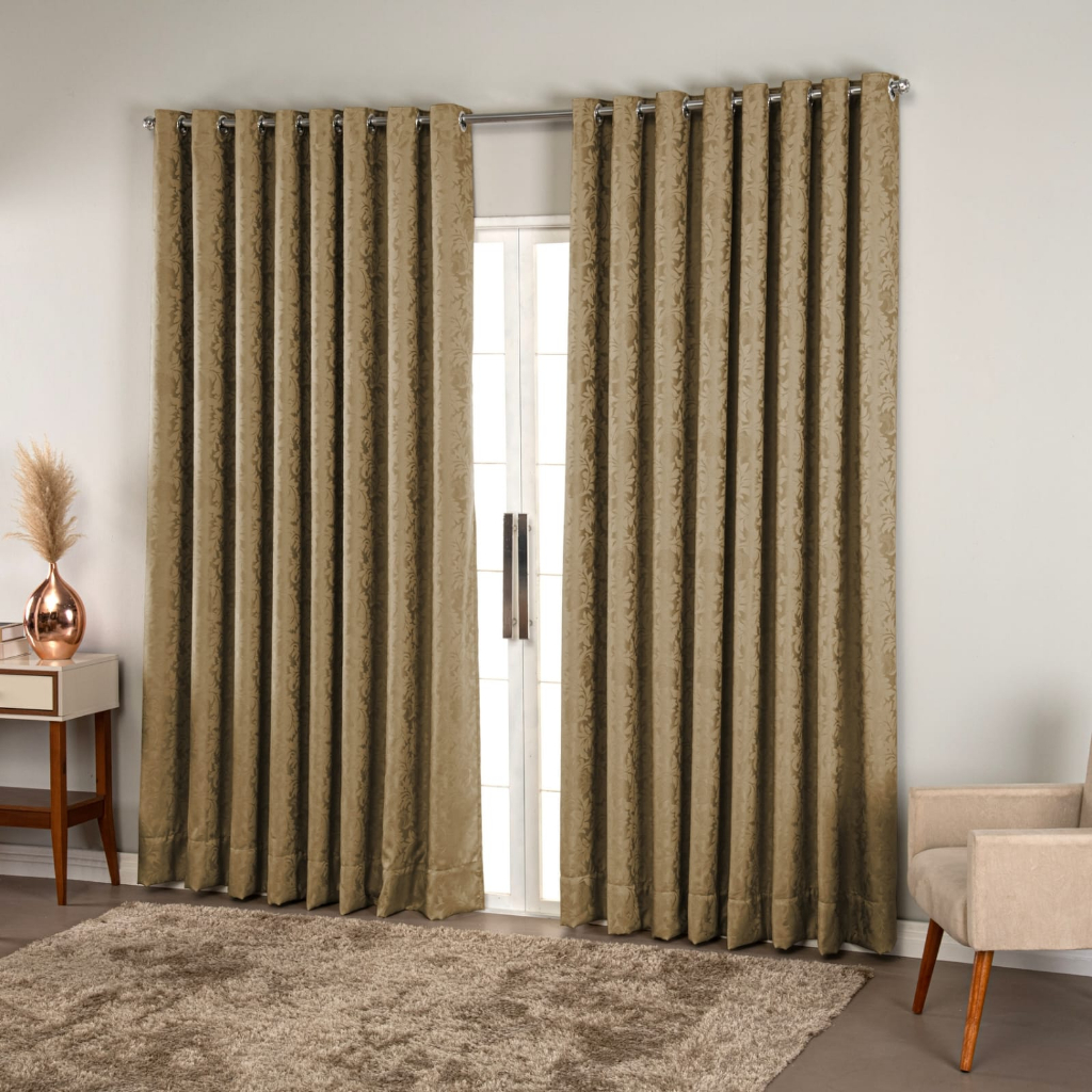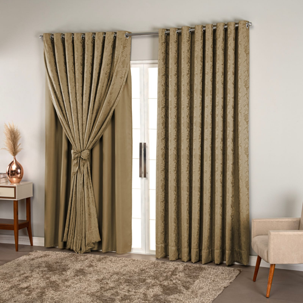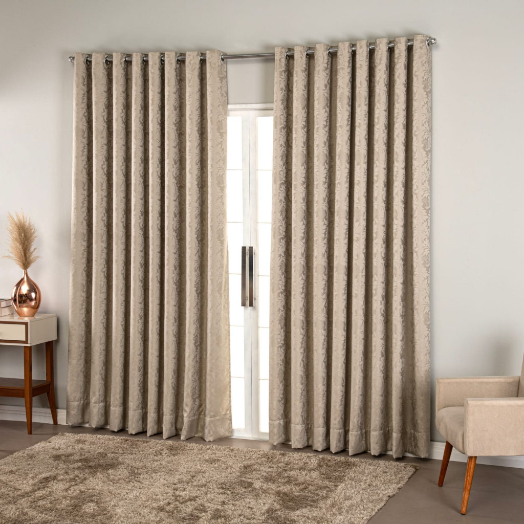 Cortina Jacquard Com Forro Blackout Em Tecido 3.00x2.50 Para Varão Sala Quarto