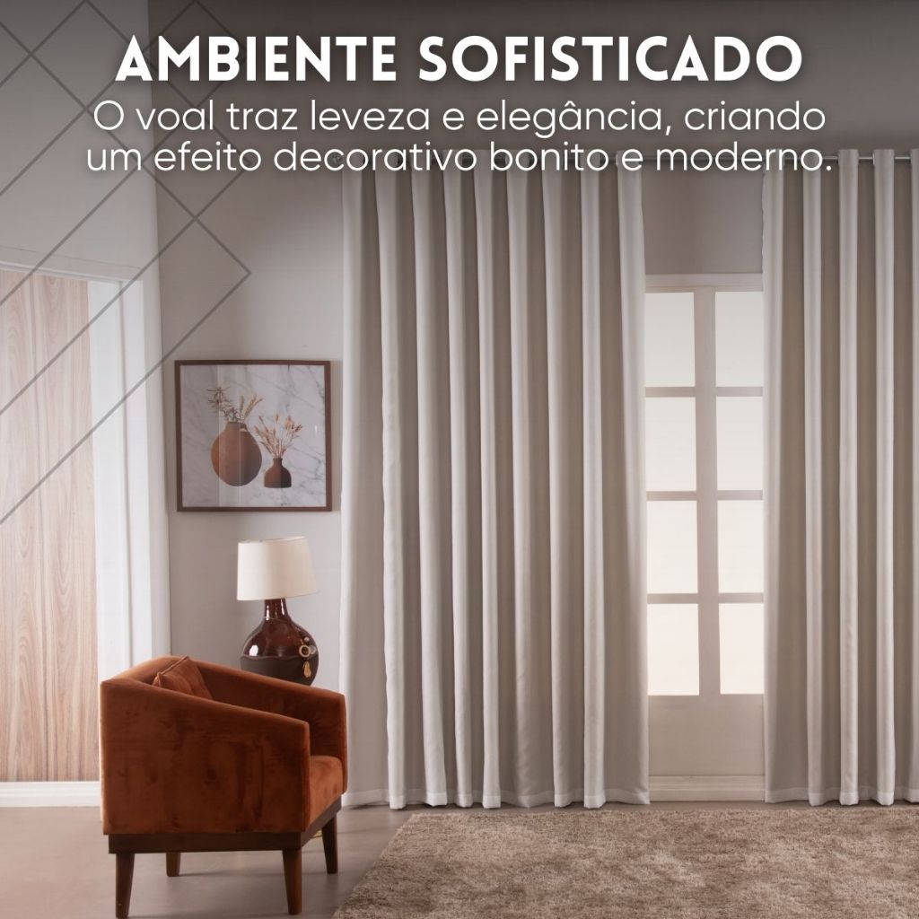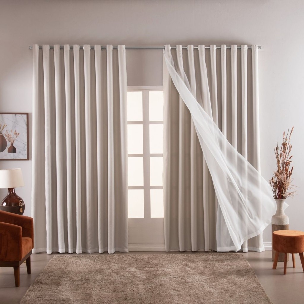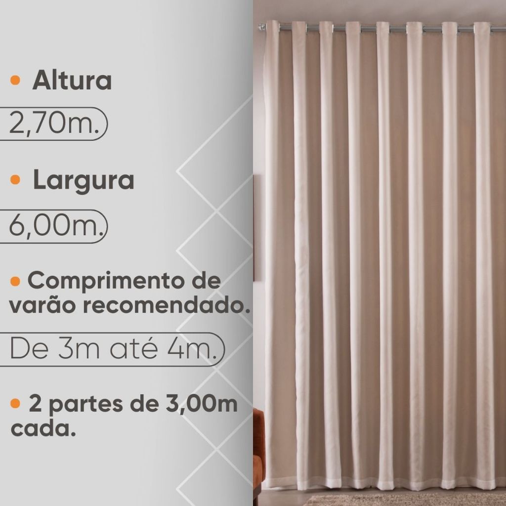 Cortina Blackout Luxo 6,00x2,70 com Voal Tecido Liso Grande Indicado para varão até 4 metros