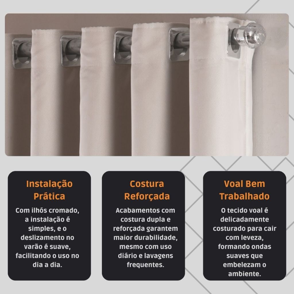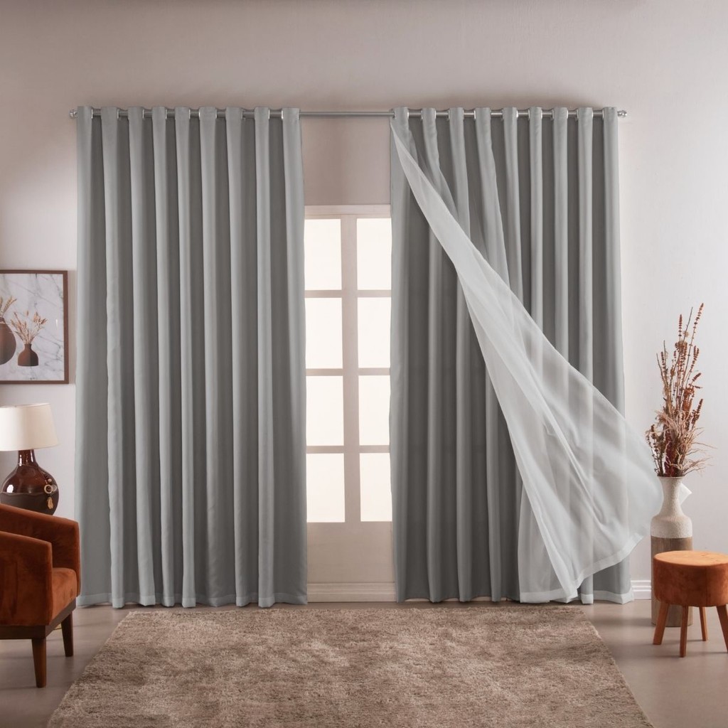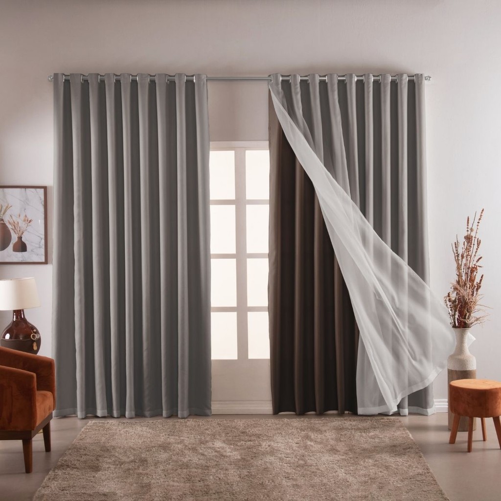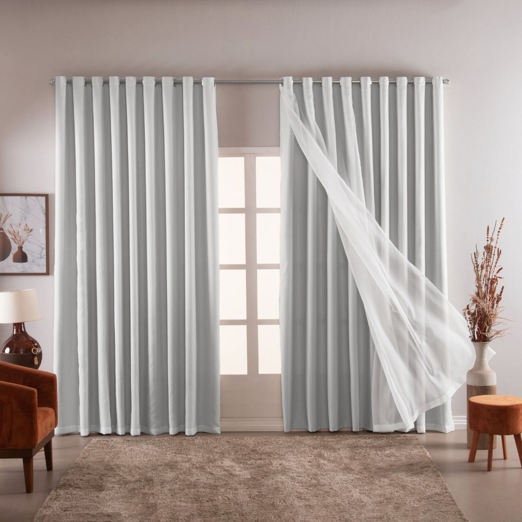 Cortina Blackout Luxo 6,00x2,70 com Voal Tecido Liso Grande Indicado para varão até 4 metros