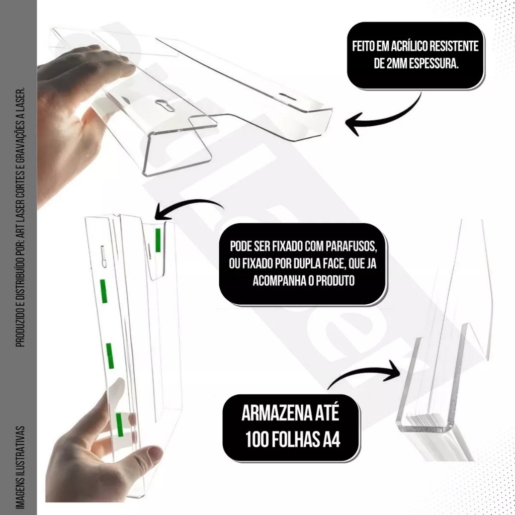 Display Porta Folha Prontuário A4 Parede Acrílico Cabe 100 Folhas