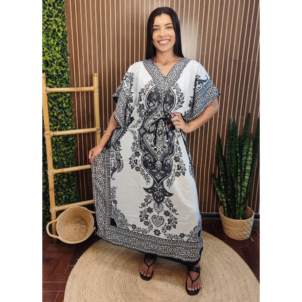 Kaftan Indiana Moda Hippie Boho Viscose Ajustável