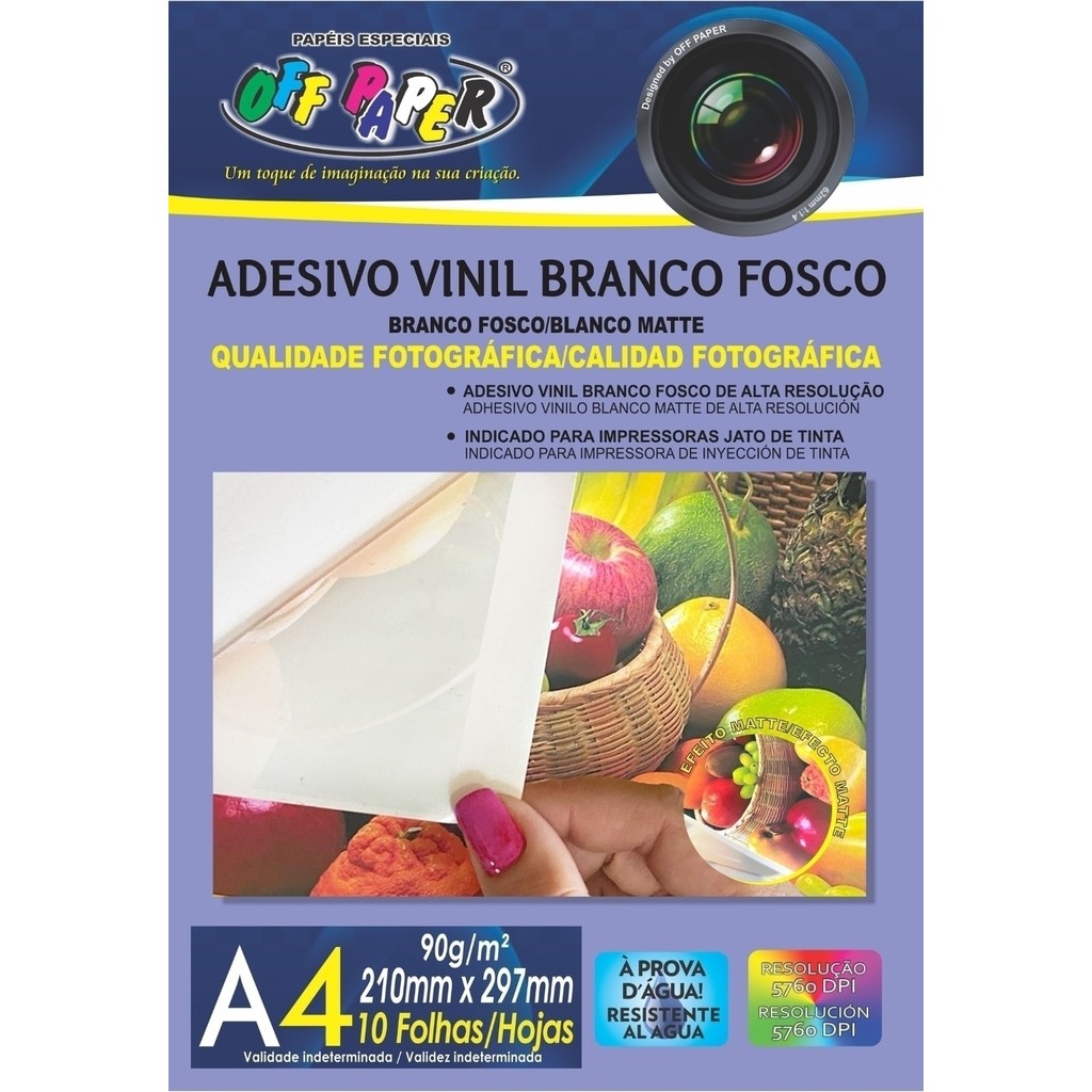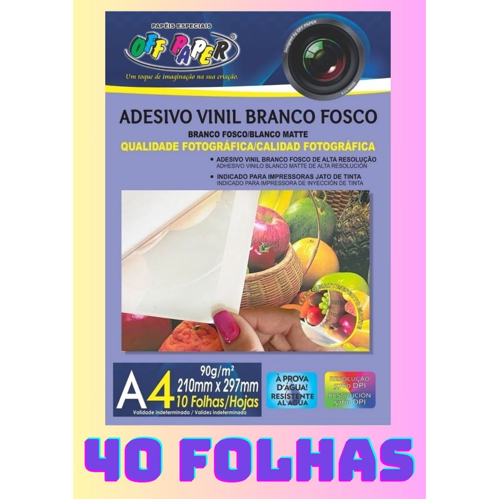 Adesivos Vinil Branco Fosco 90g A4 com 10 folhas