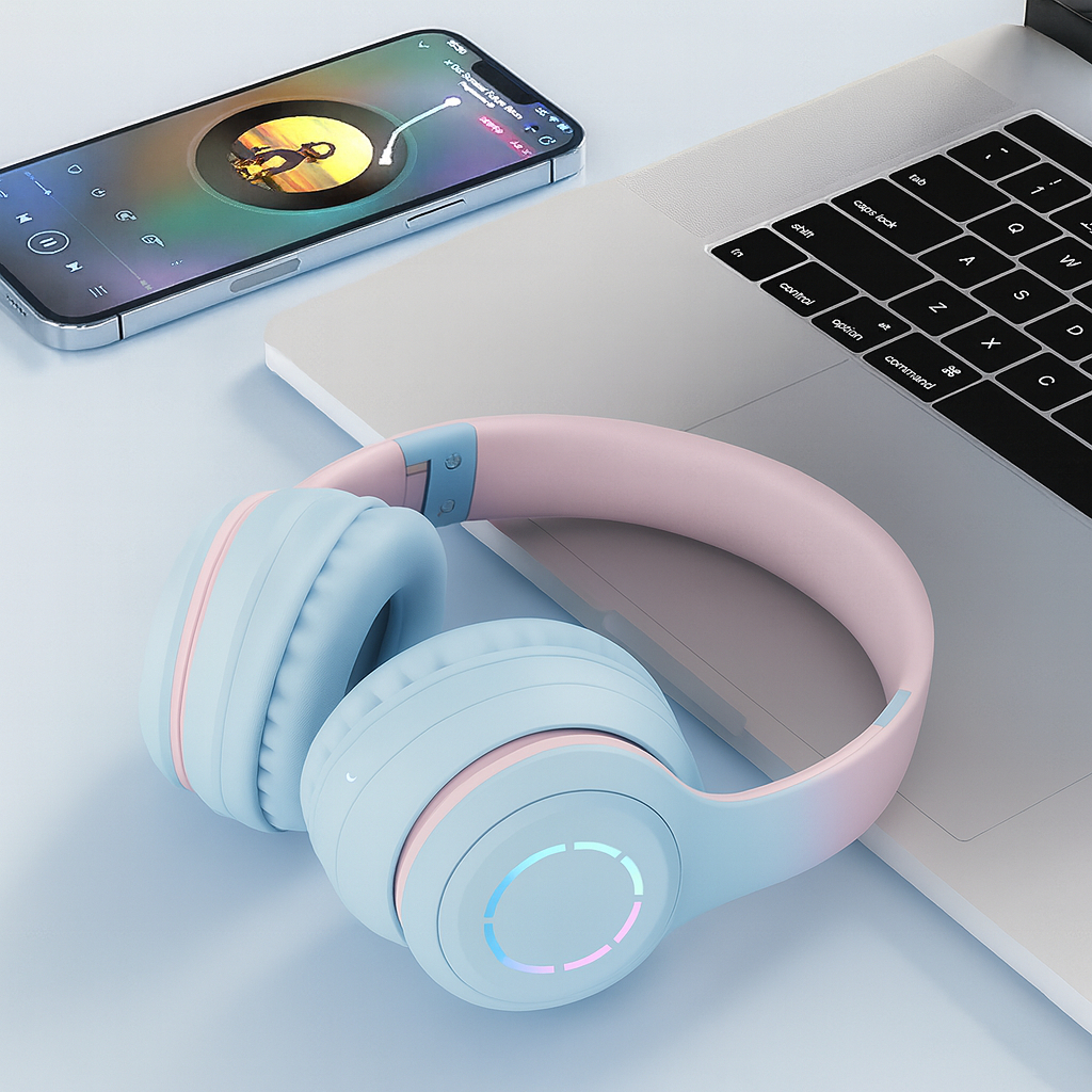 Fone De Ouvido Bluetooth colors Led Sem Fio Grande Bass Colorido esporte isolamento