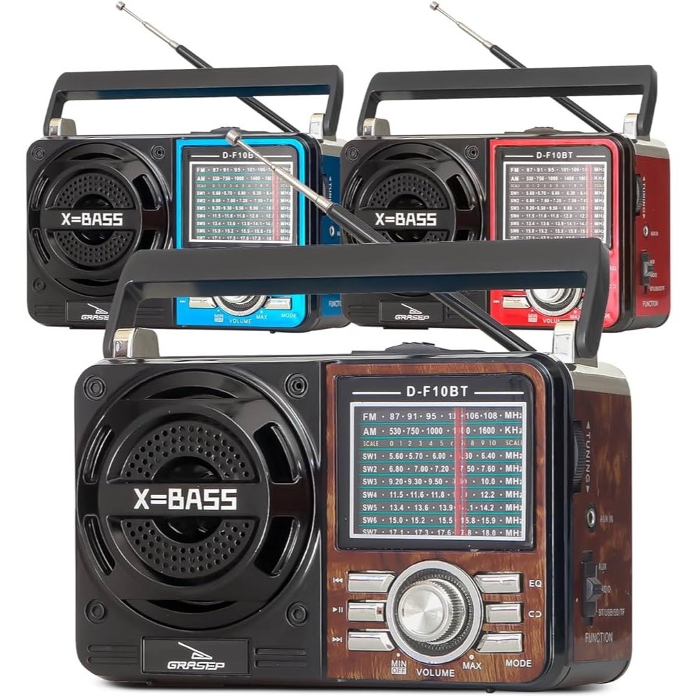 Radio Retro portatil Vintage Bluetooth AM FM Pilha e tomada Pendrive SD USB