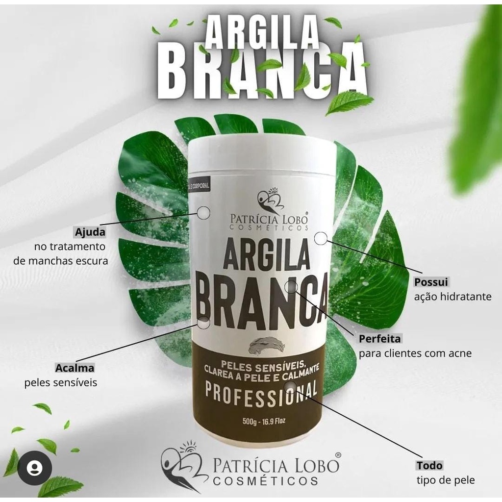 Argila Branca 100% Pura e Natural Patricia Lobo Clareia a pele