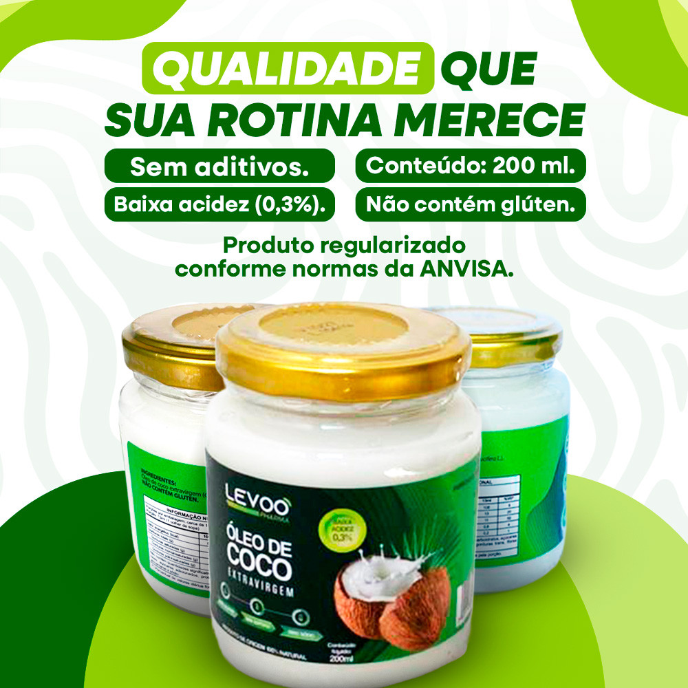 Óleo de Coco Extravirgem 0,3% Acidez 200ml Levoo