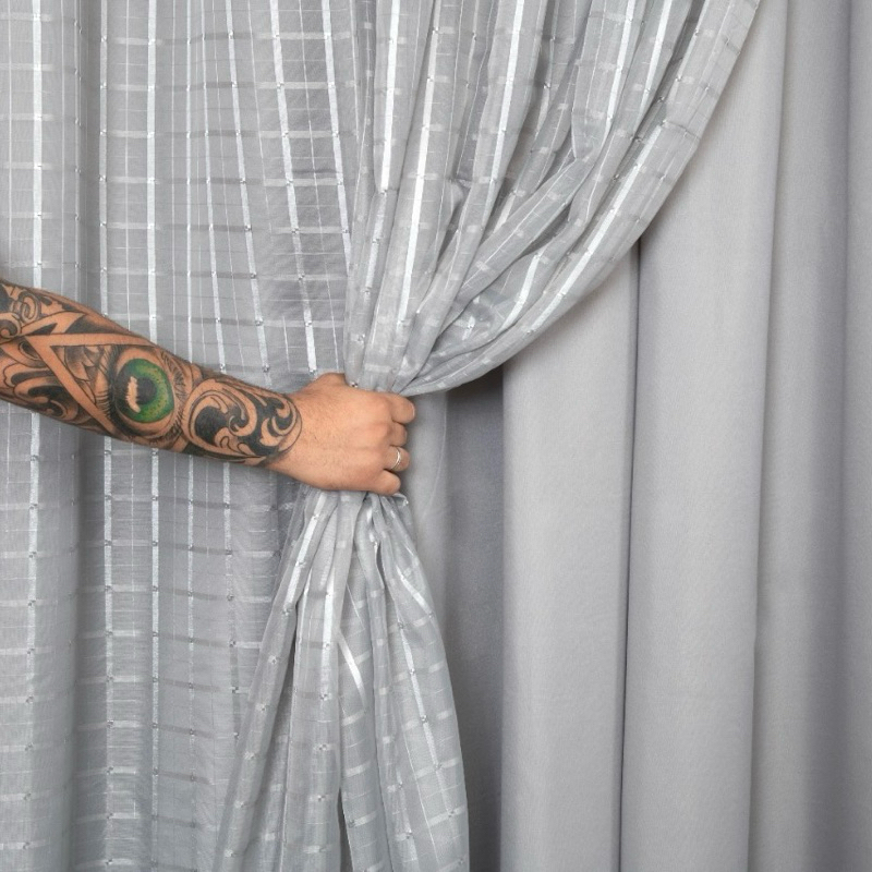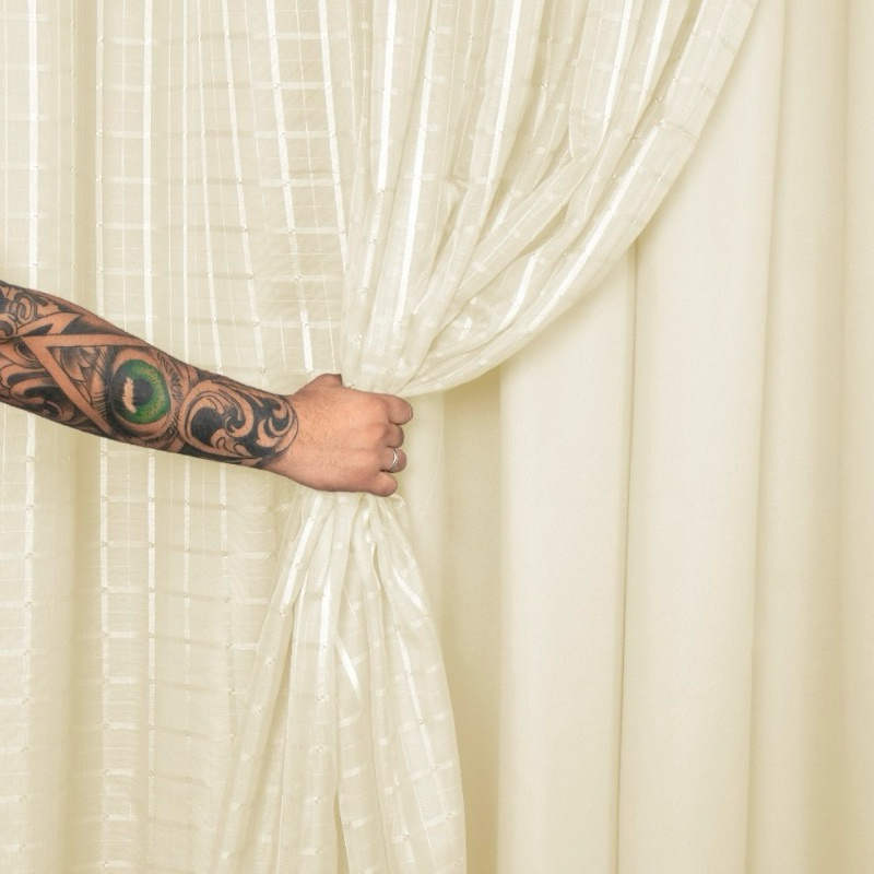Cortina Voil Xadrez Sala e Quarto 6,00 x 2,30/2,40/2,50/2,60/2,70/2,80 c/ Forro de Microfibra