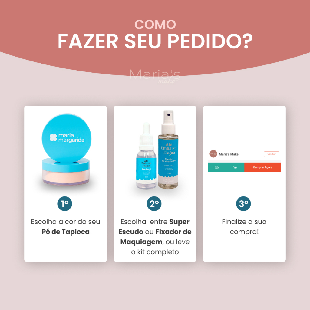 Monte o Kit | Pó de Tapioca + Fixador de Maquiagem ou Super Escudo Maria Margarida Spray para Pele Blindada Hidratante
