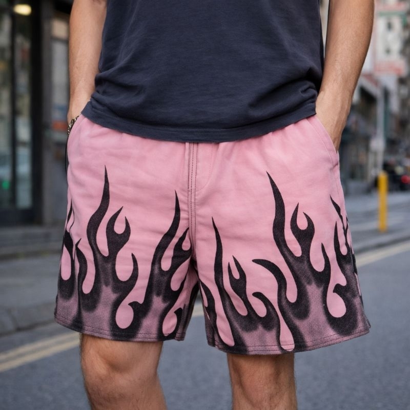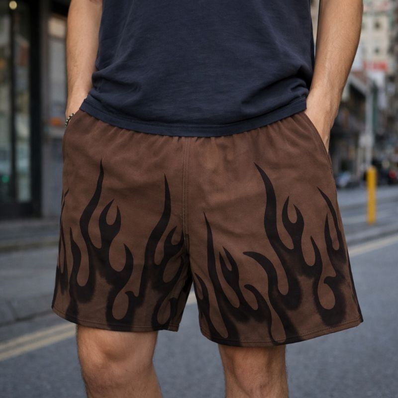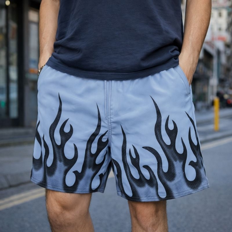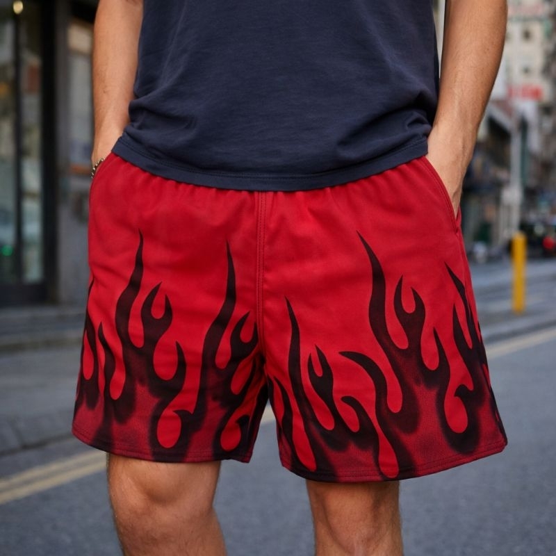 Shorts Tactel Masculino Estampado Fogo Bermuda Elastano Streetwear Masculina Treino