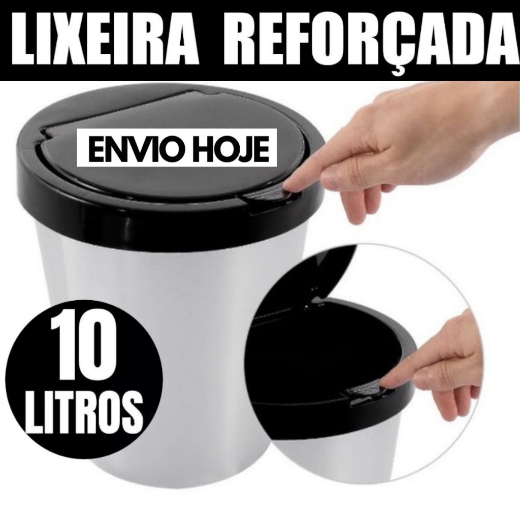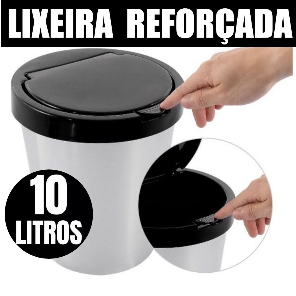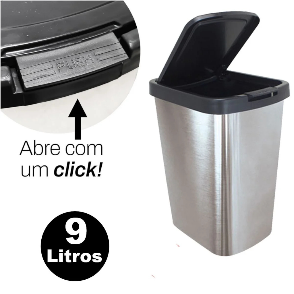 LIXEIRA CESTO LIXO 10 LITROS INOX AUTOMÁTICA TAMPA ABRE COM CLICK BANHEIRO COZINHA ESCRITÓRIO QUARTO