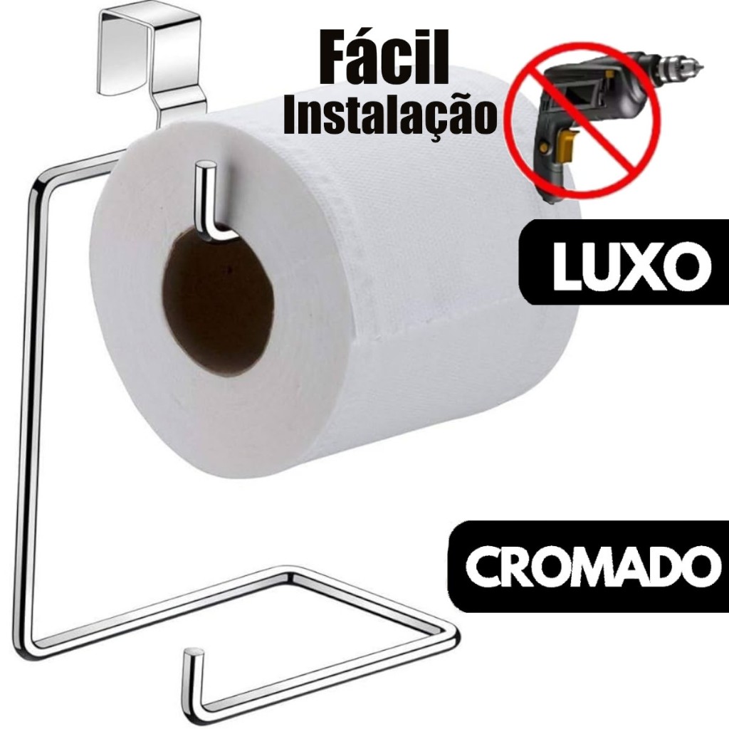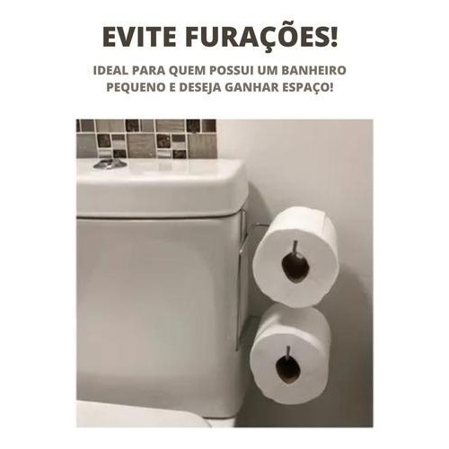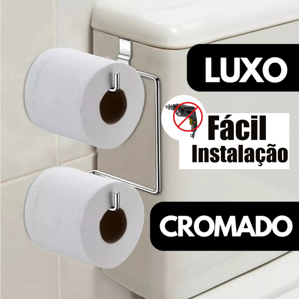 SUPORTE PAPEL HIGIÊNICO CAIXA ACOPLADA PRIVADA REFORÇADO DUPLO PORTA CROMADO ARAMADO PARA DOIS ROLOS
