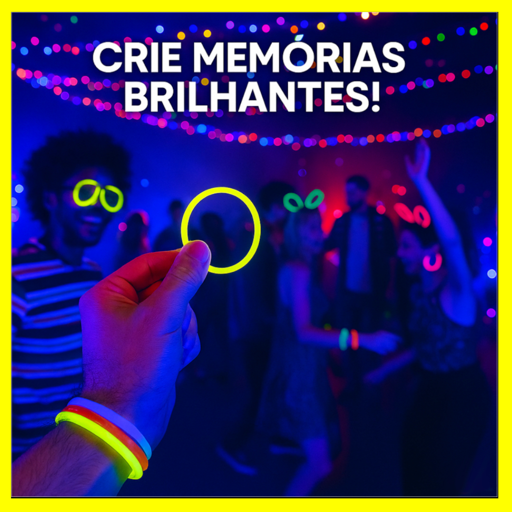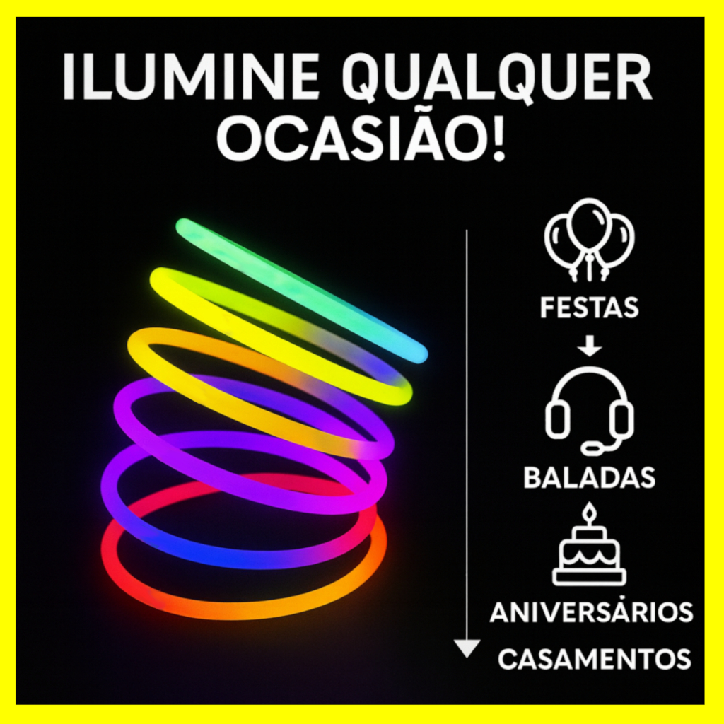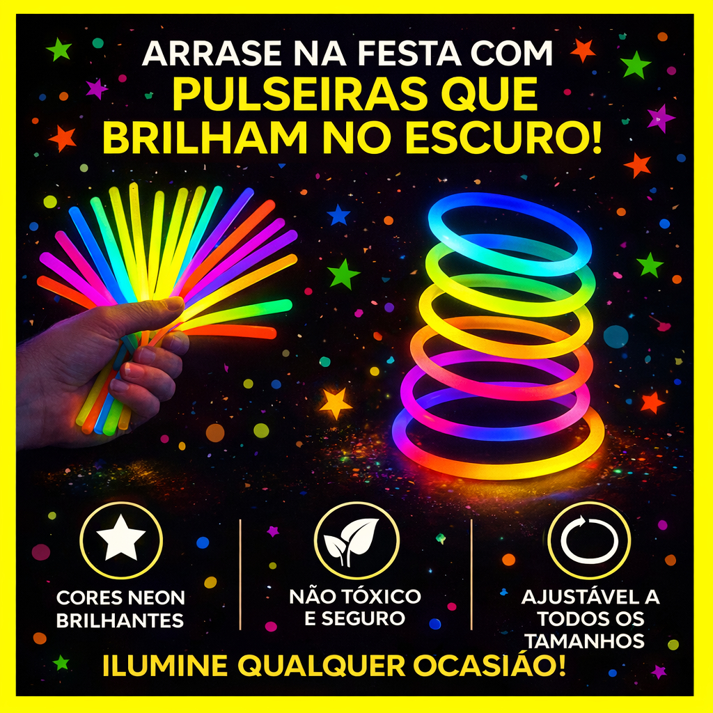 Pulseira Neon Brilha no Escuro Kit 100/200 Fluorescentes Alto Brilho Festa Balada