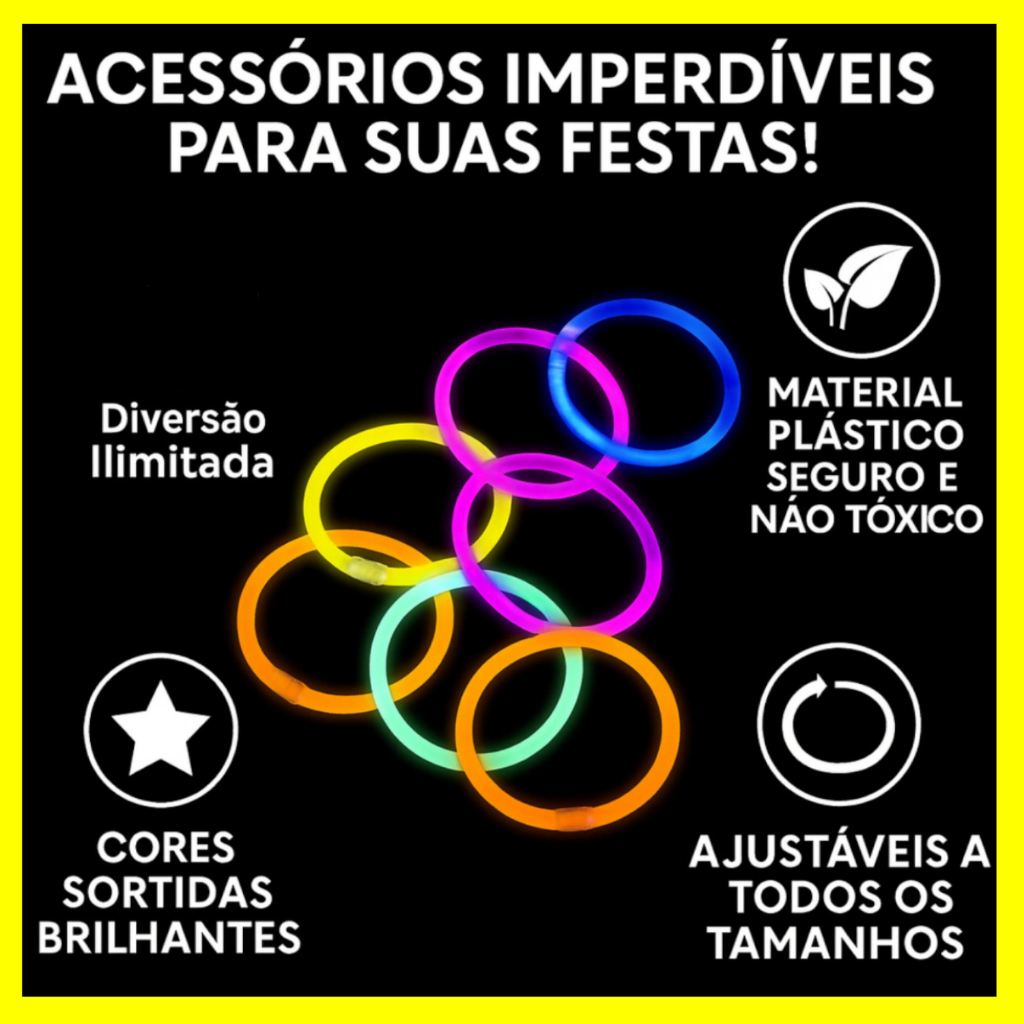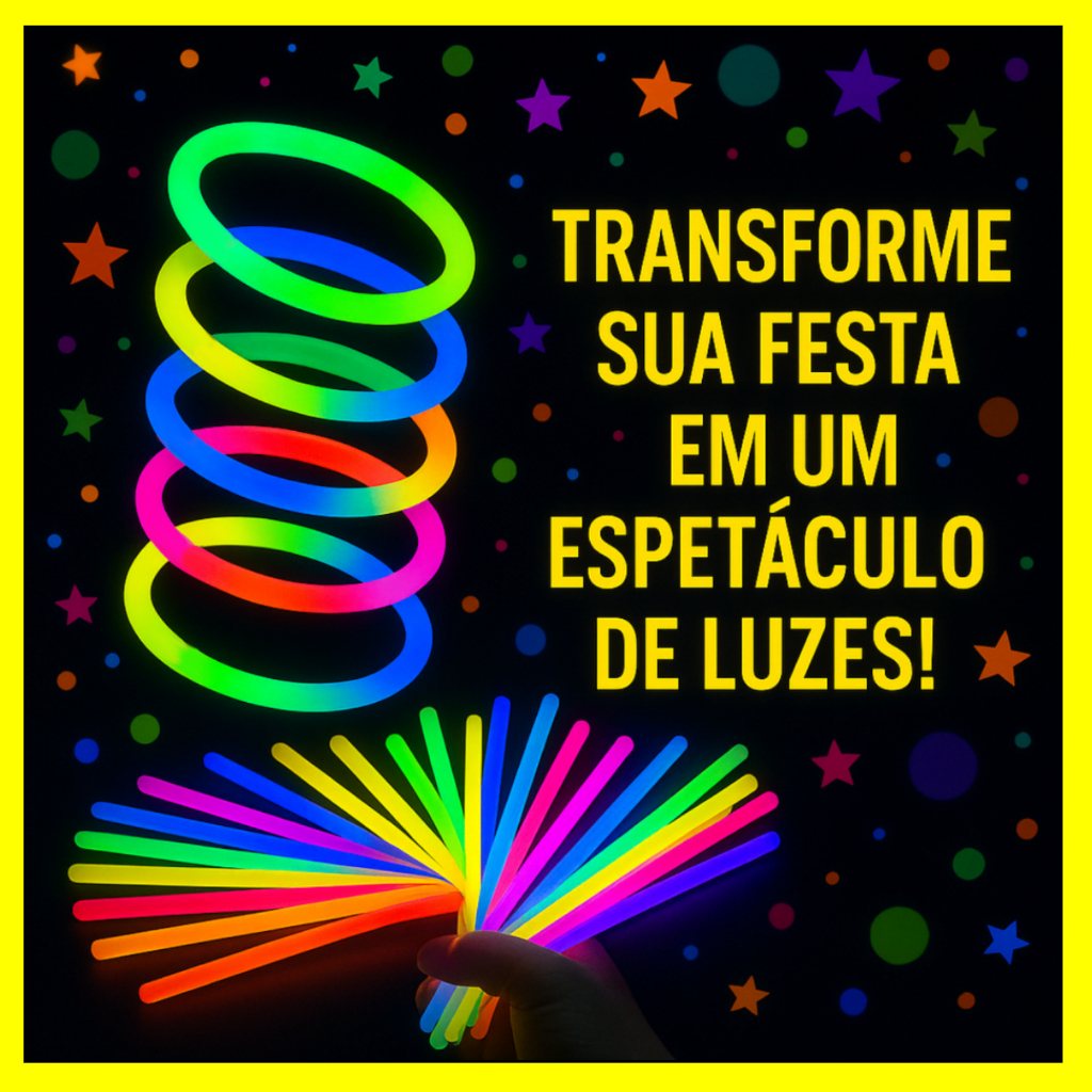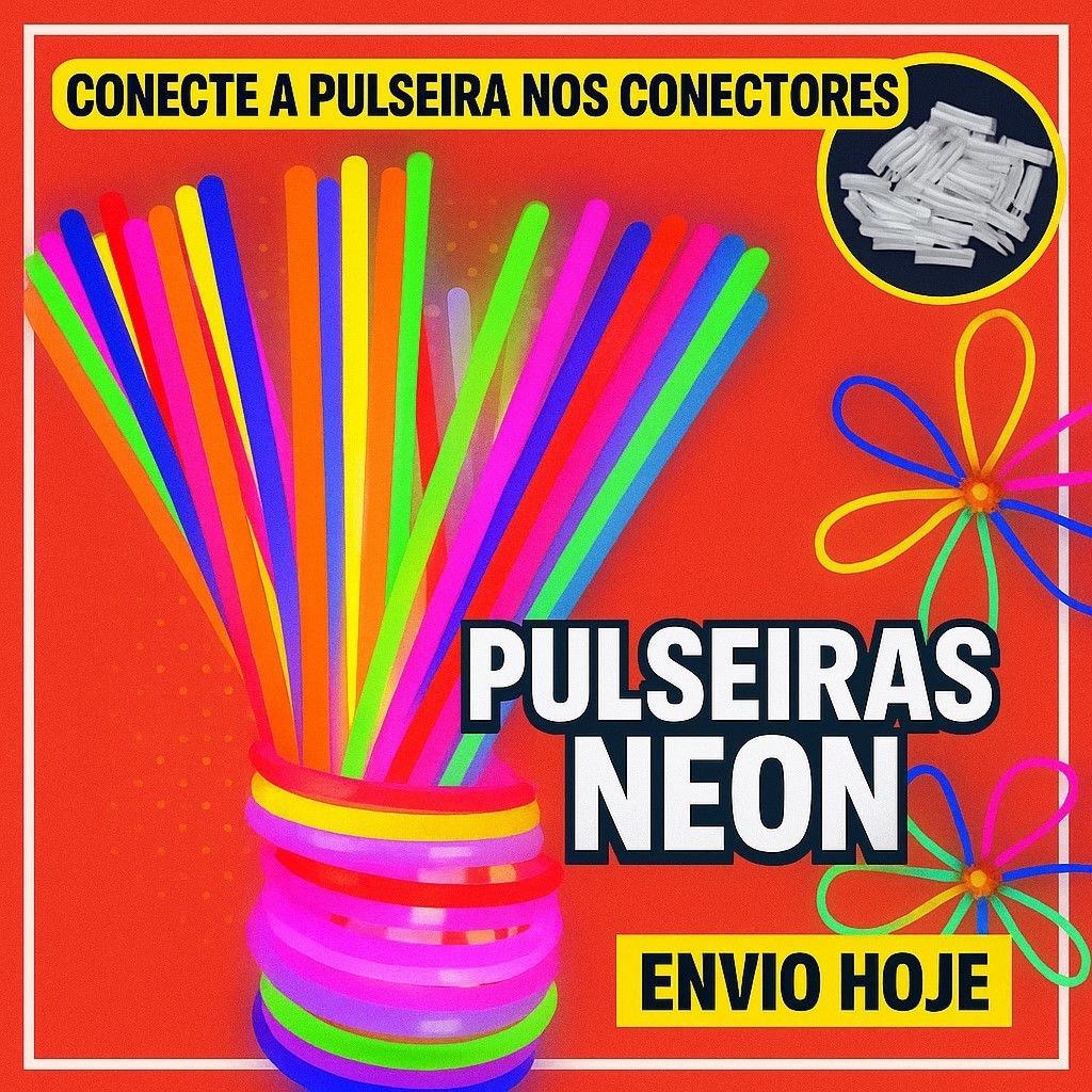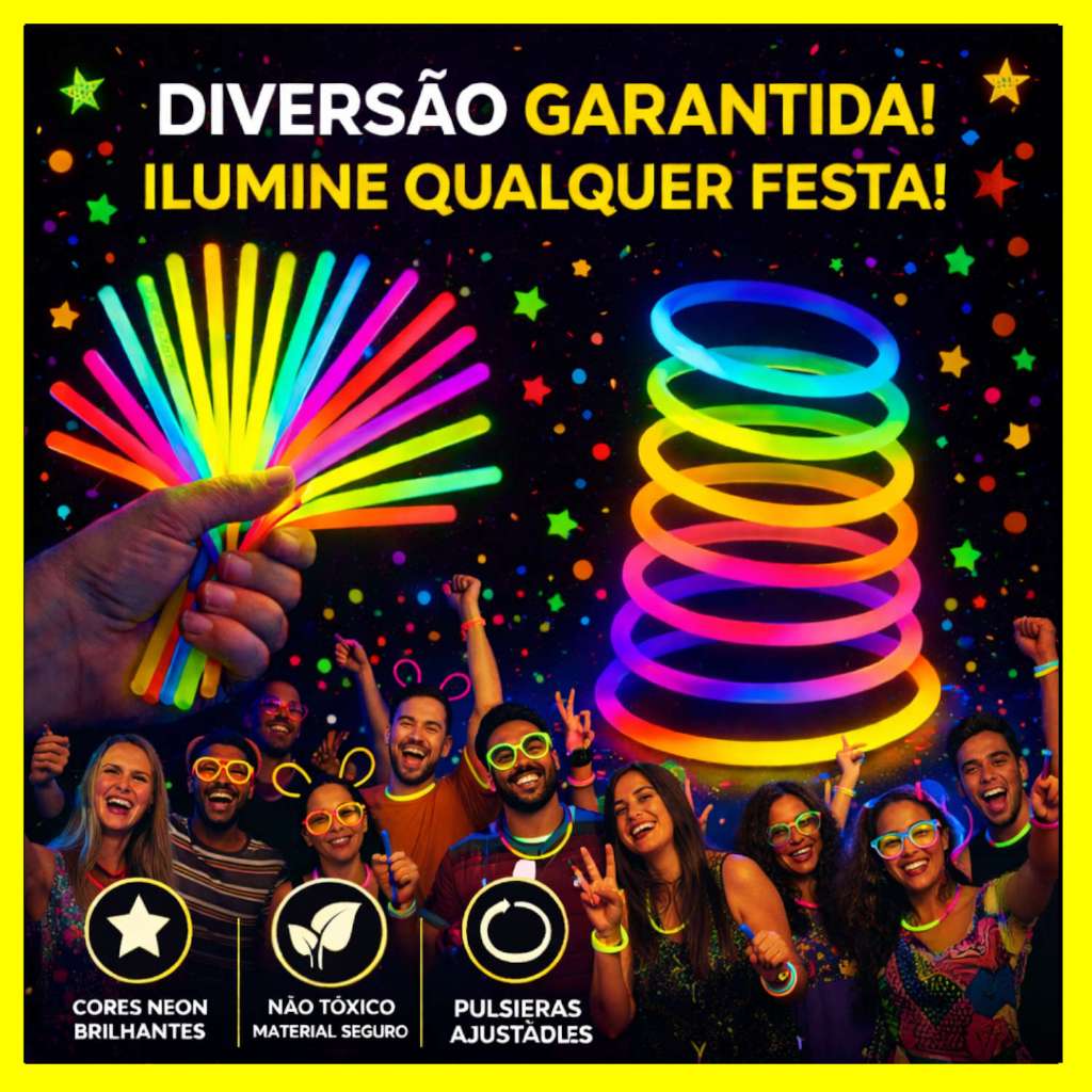 Pulseira Neon Brilha no Escuro Kit 100/200 Fluorescentes Alto Brilho Festa Balada