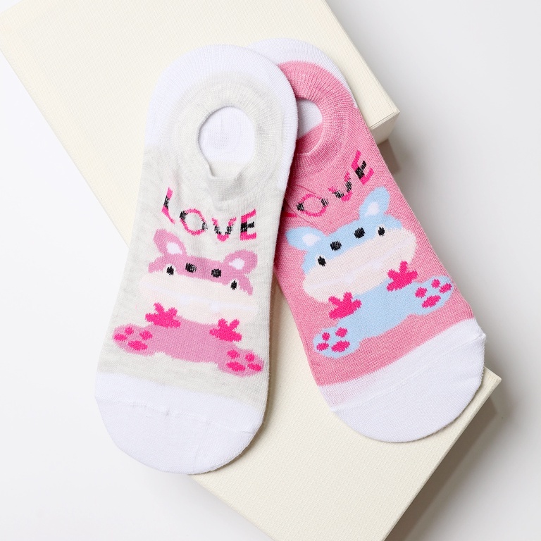 Kit 3 Pares Meia Adulto Feminina Sapatilha Estampada Invisível Bichinhos