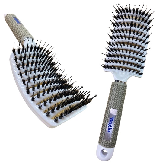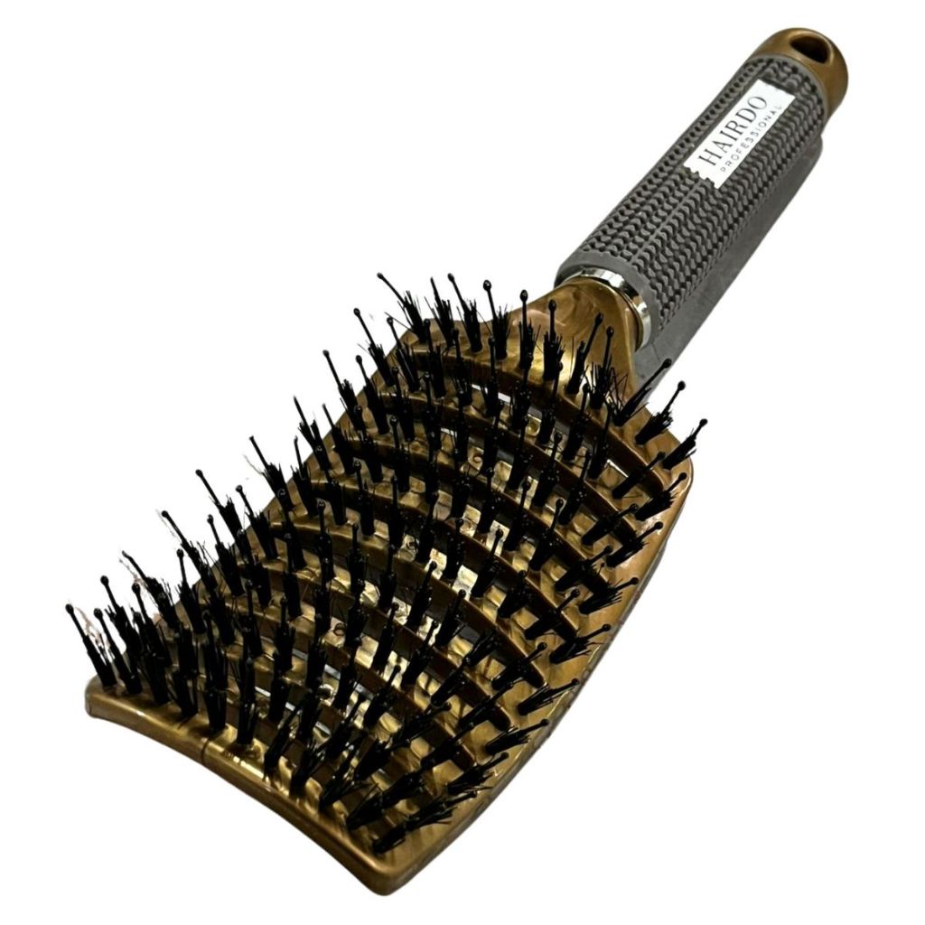 Escova Raquete Com Cerdas Duplas De Javali e Nylon Vazada Profissional
