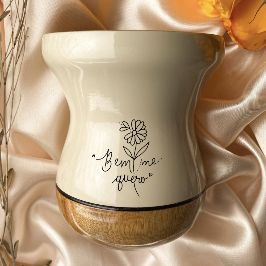 Cuia de chimarrão Madeira Bicolor Nude Personalizada Arte Minimalista - Varias opções