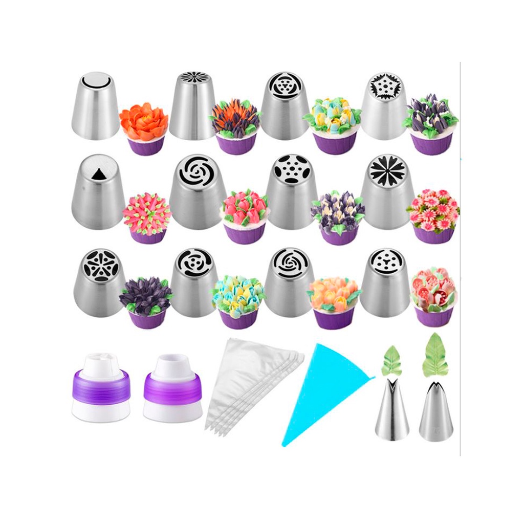 Jogo De Bicos Inox Kit Com 12 Peças Confeitar Bolo, Tortas