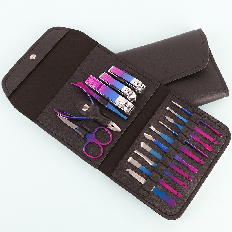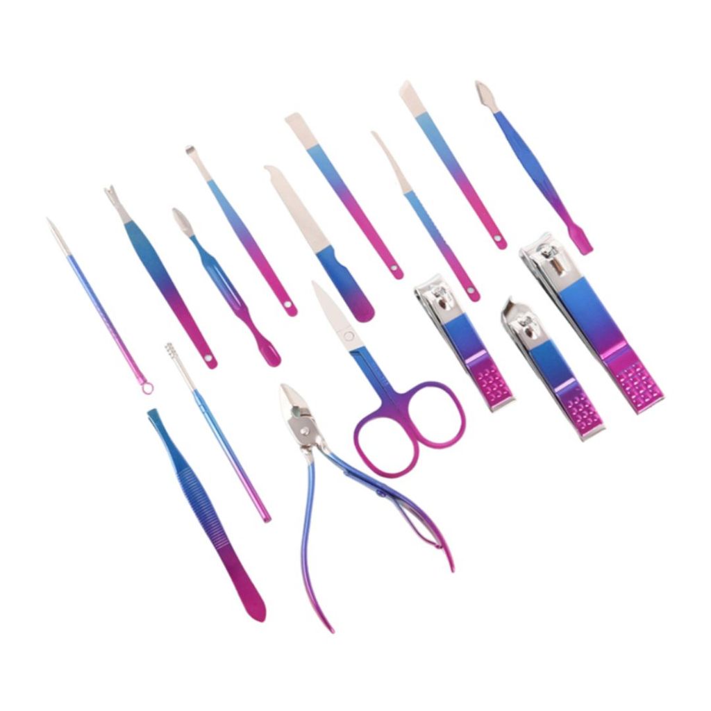 Kit 16 Peças Cortador De Unhas Ferramentas Empurrador Cutícula Aço Inoxidável