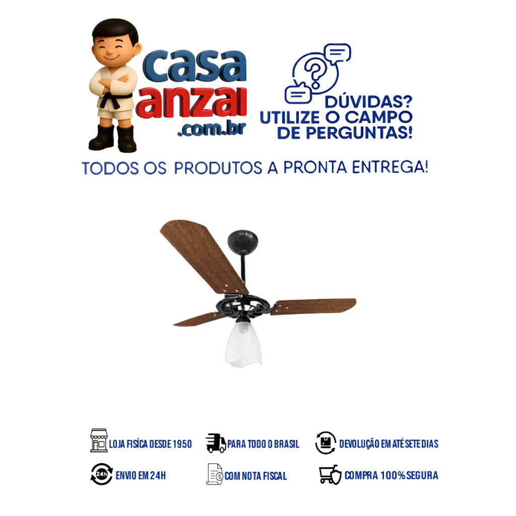 Ventilador De Teto Yris 127V Preto Mogno 150W Ventex - Alta Potência e Durabilidade