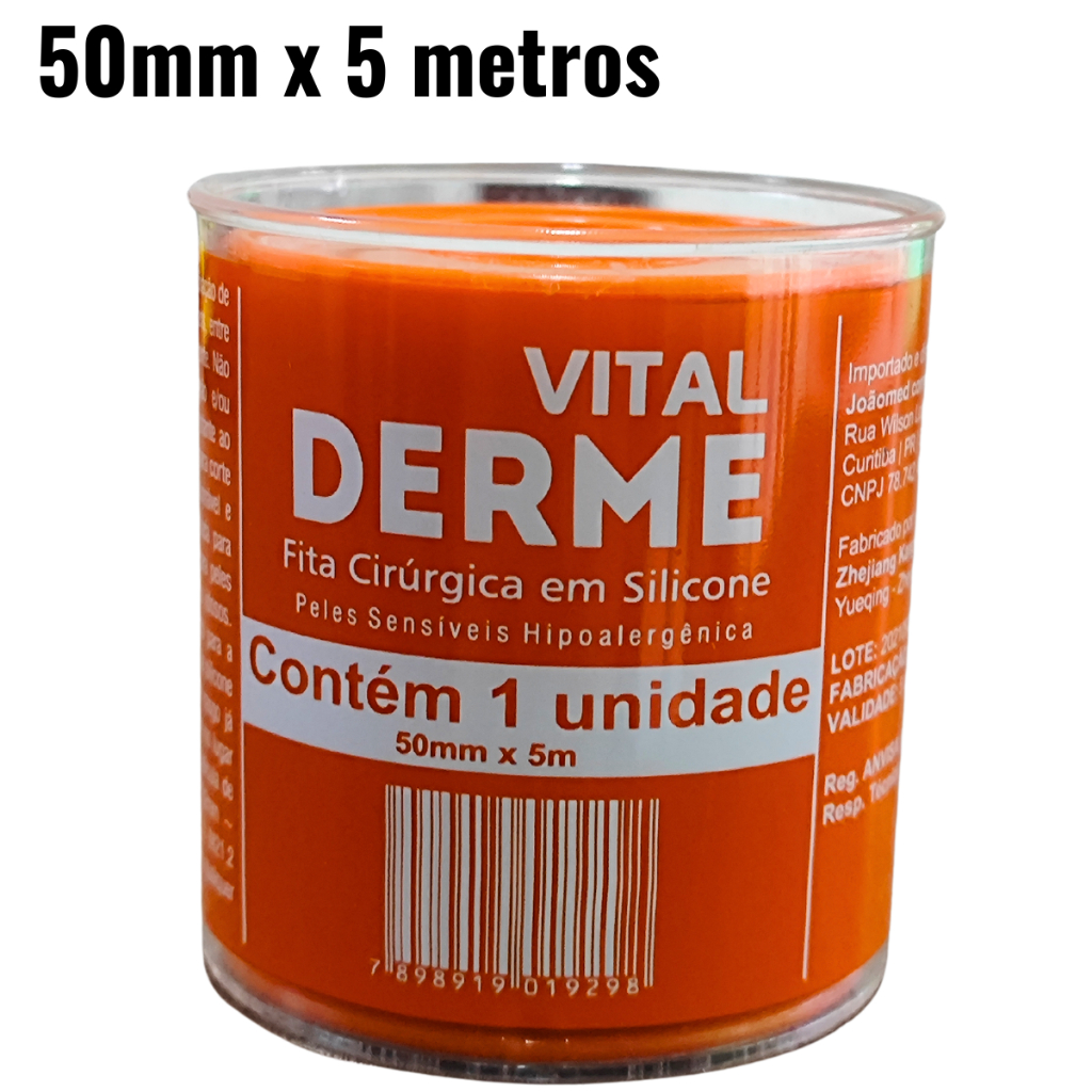 Fita Cirúrgica de Silicone 5cm x 5 metros - Fita Gel Reposicionável Hipoalérgica Vital Derme
