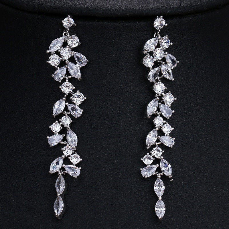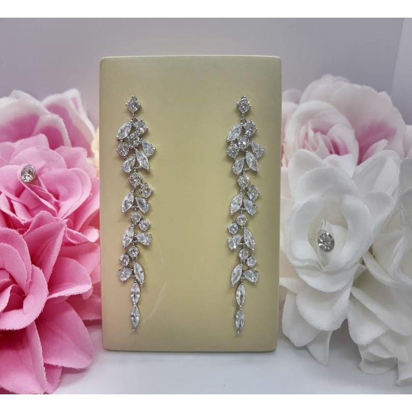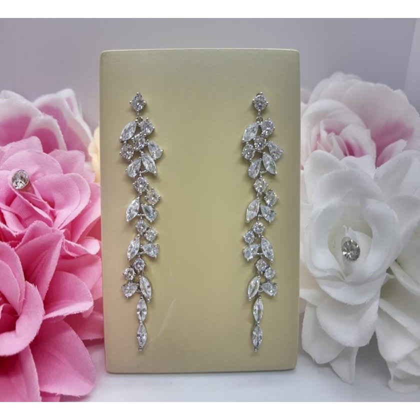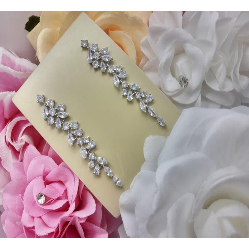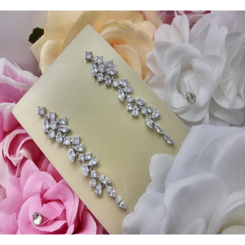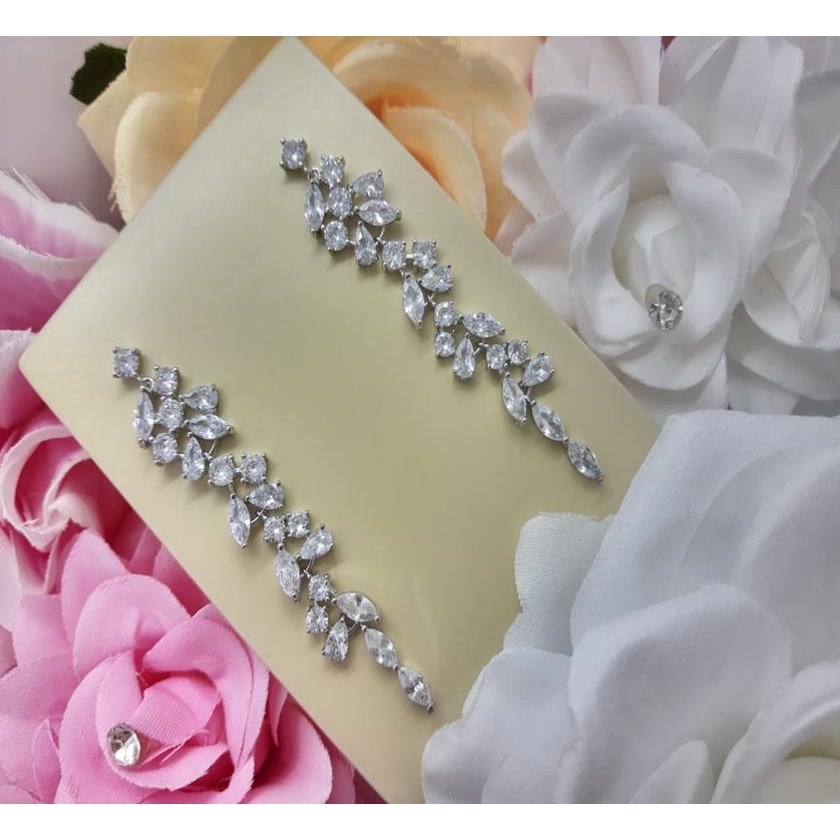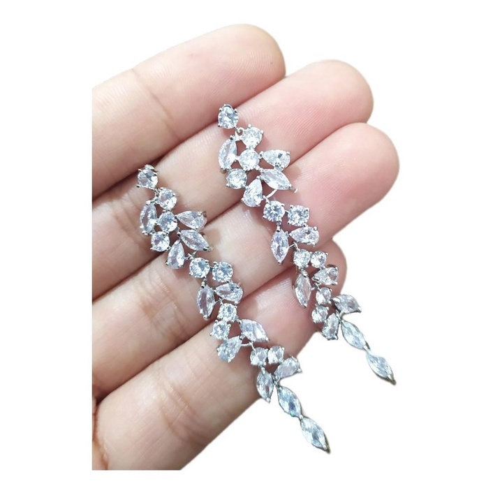 Brinco Noiva pedra Zirconia Pendurado Grande Prata Debutante Luxo