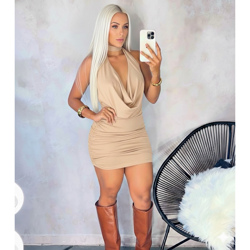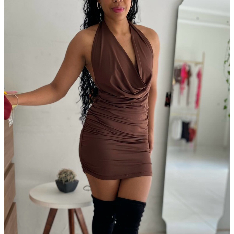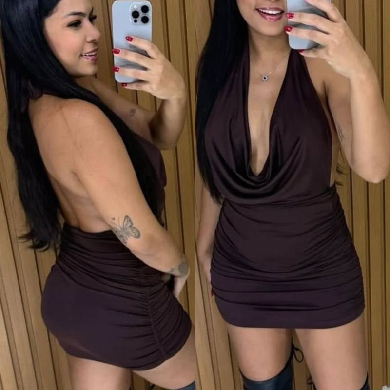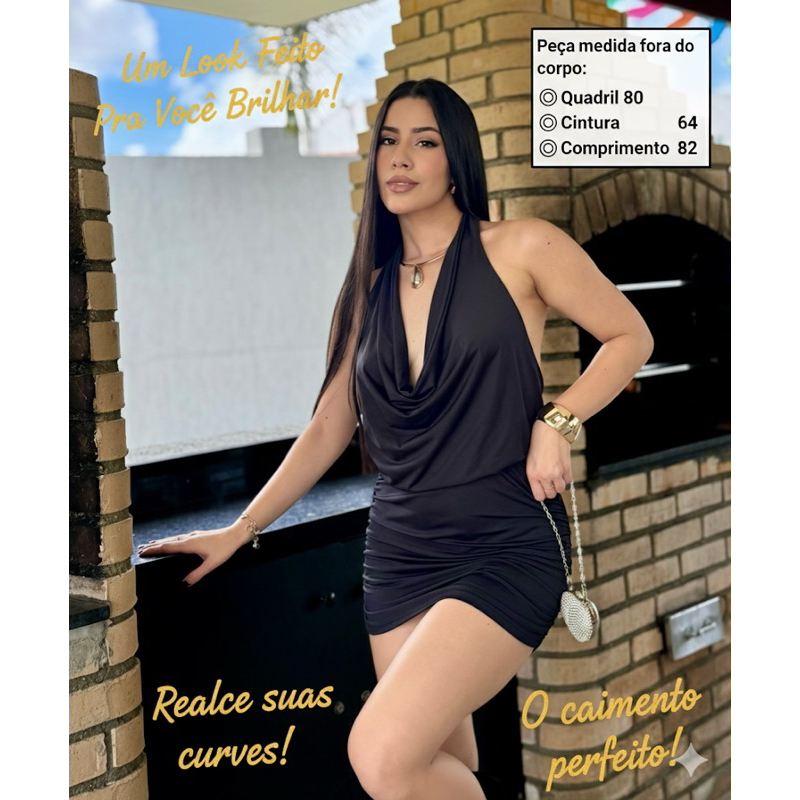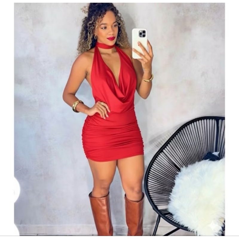 Vestido Feminino Festa Balada Curto Amarração Decote V Drapeado Franzido nas laterais
