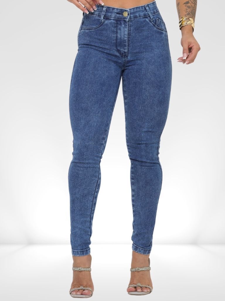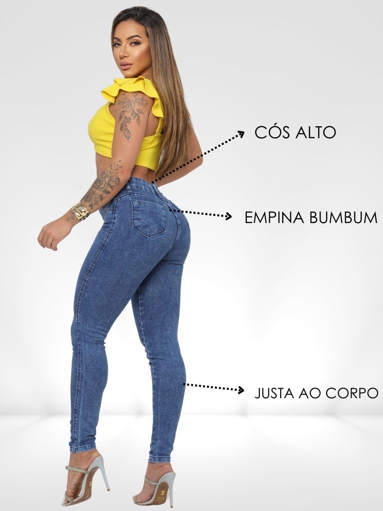 Calça Jeans Feminina Com Lycra Elastano Cós Alto Modelagem Empina Bumbum Justa ao Corpo