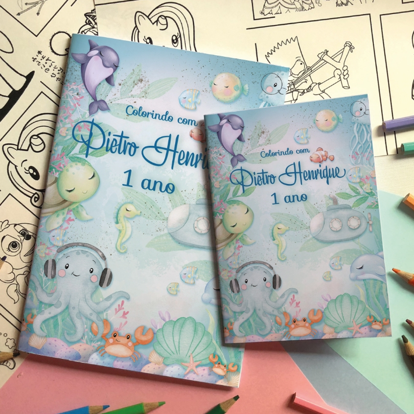 Revistinha de colorir Fundo Mar candy lembrancinhas A6 10x15 cm.