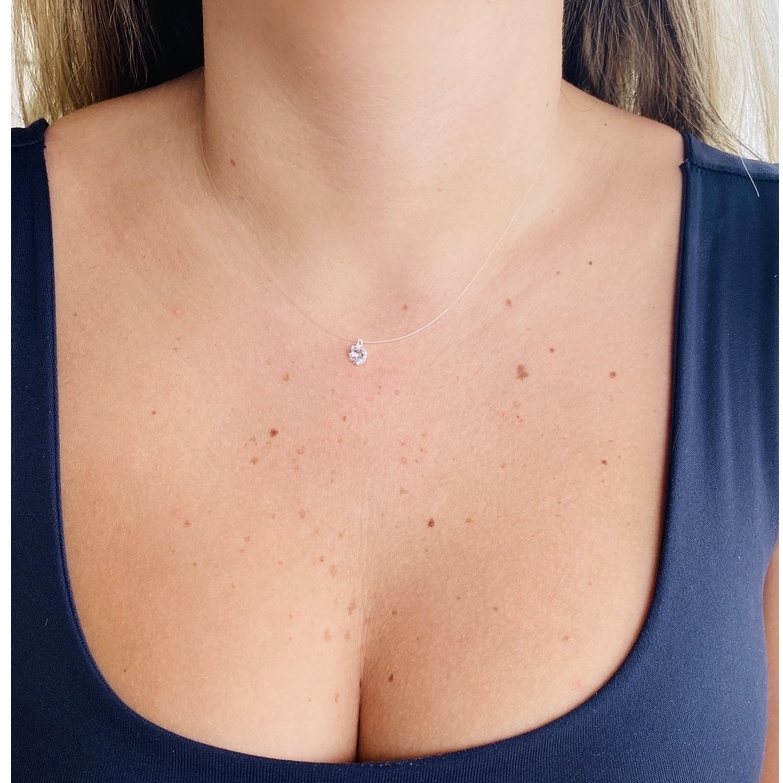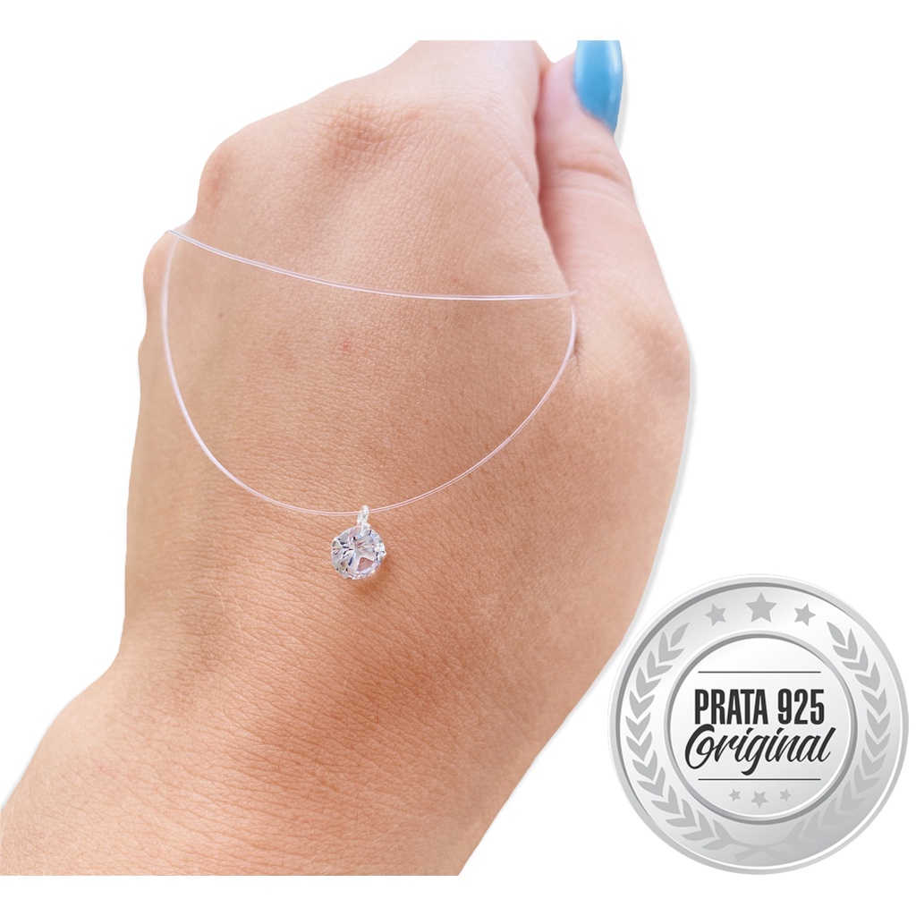 Colar Nylon De Prata 925 Ponto de Luz 40cm Pedra Zircônia 5mm
