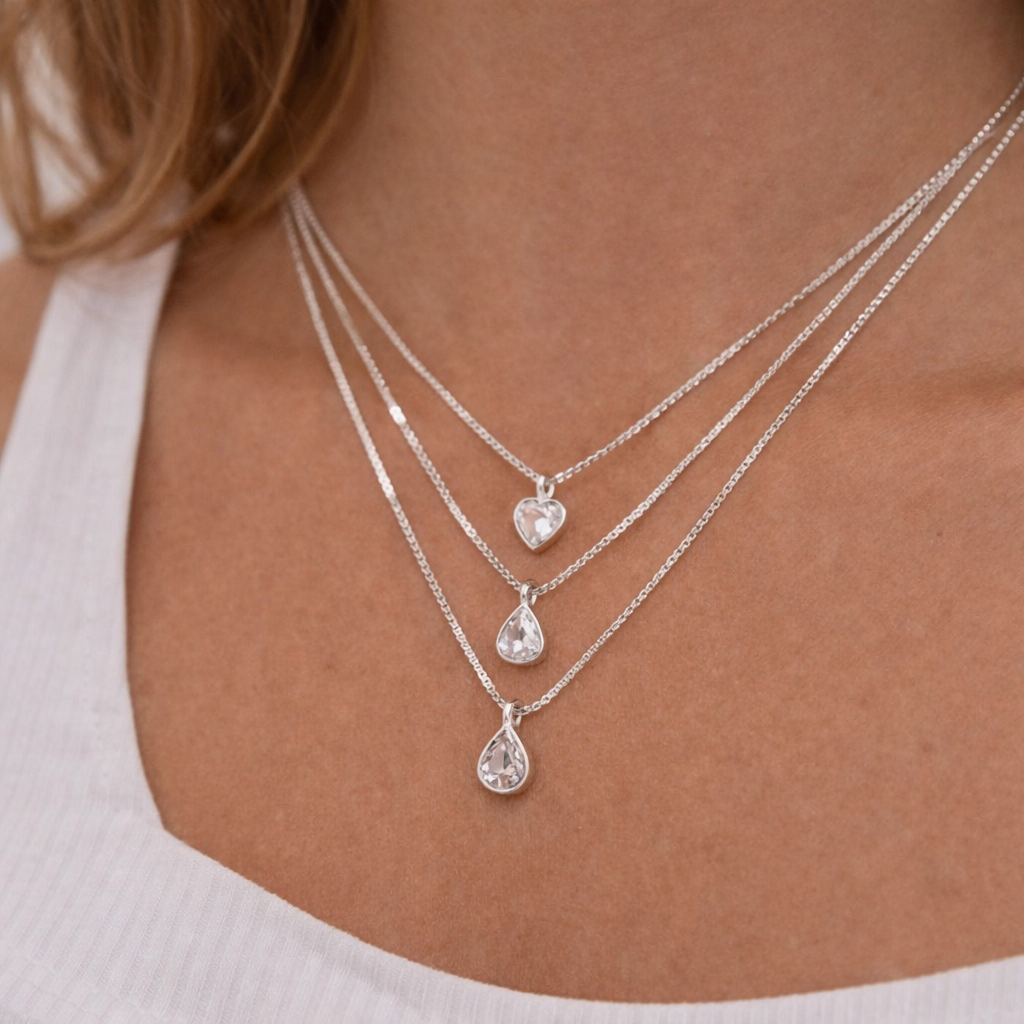 Colar Prata 925 Ponto de Luz Coração Gota Redondo