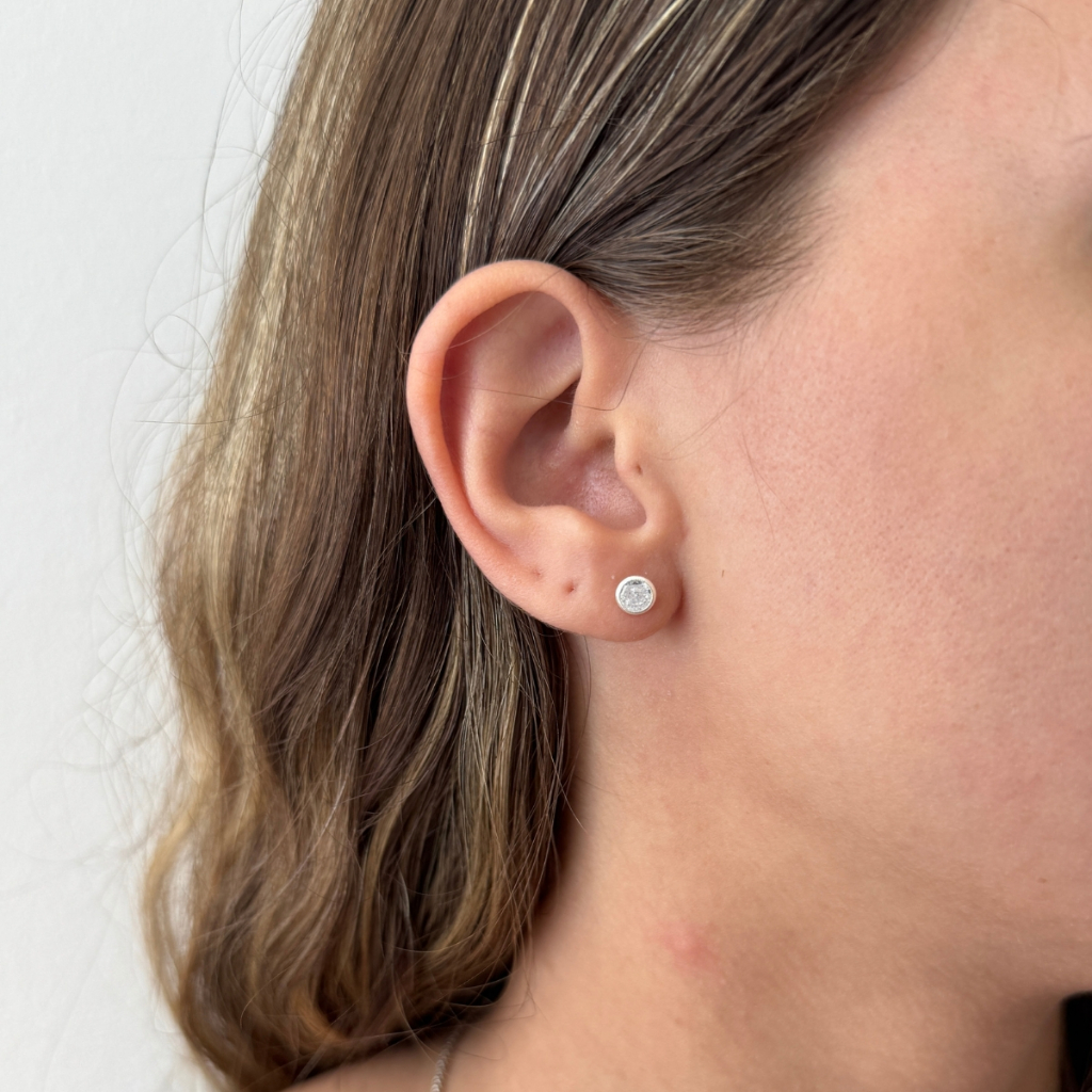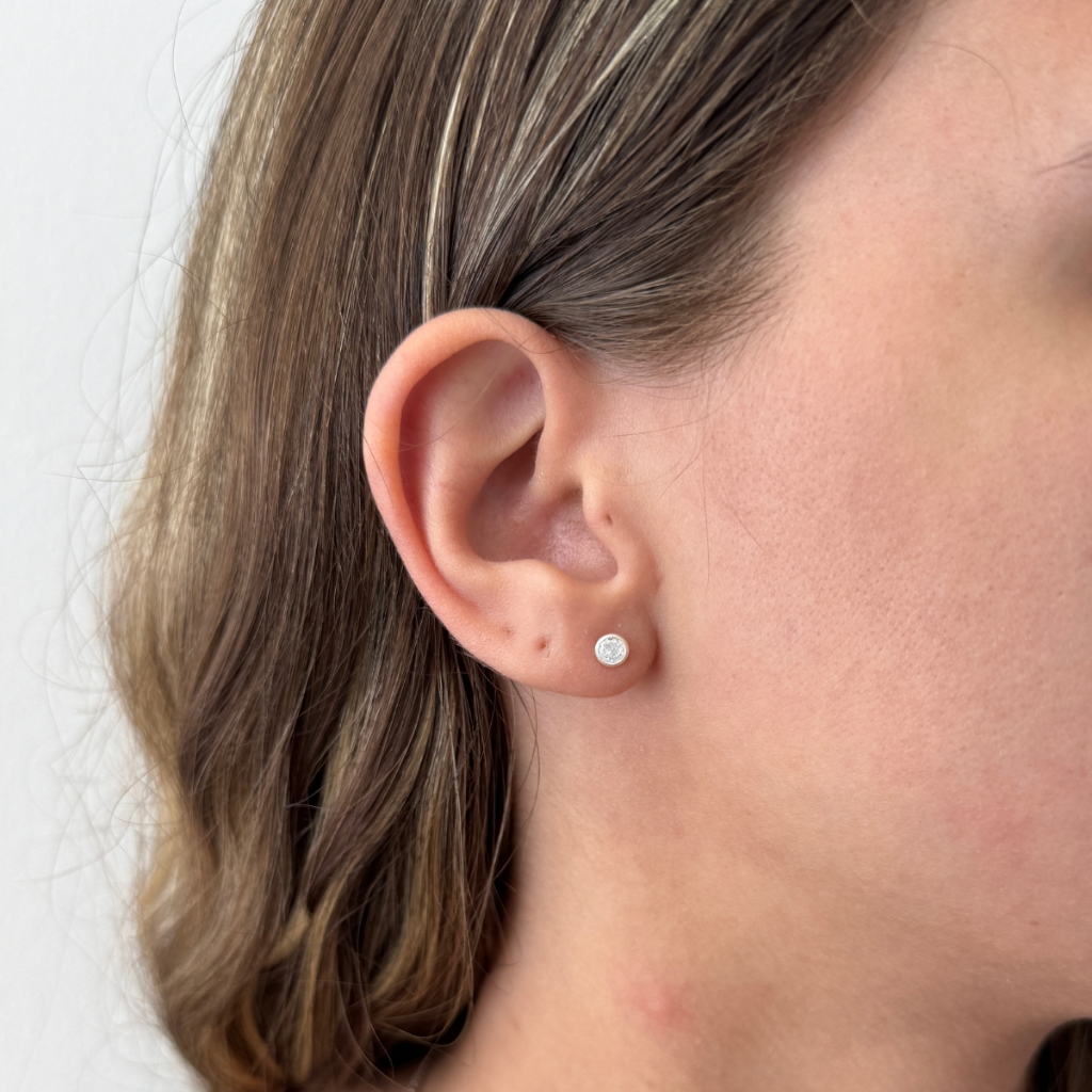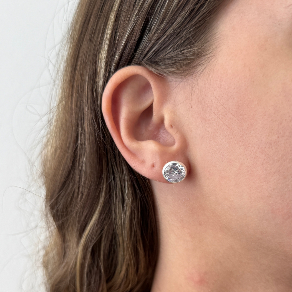 Brinco Ponto de Luz Feminino e Masculino Prata 925 Legítima Pedra Zircônia Embutida