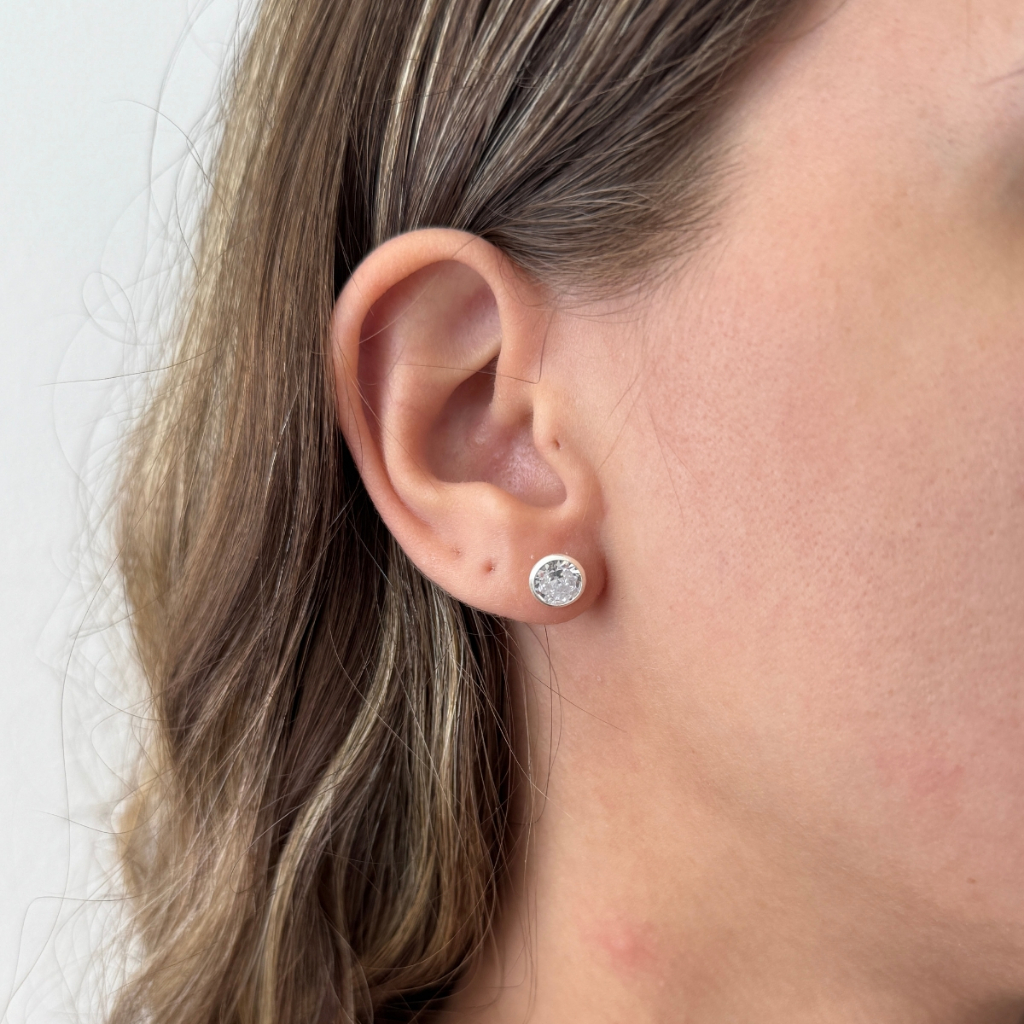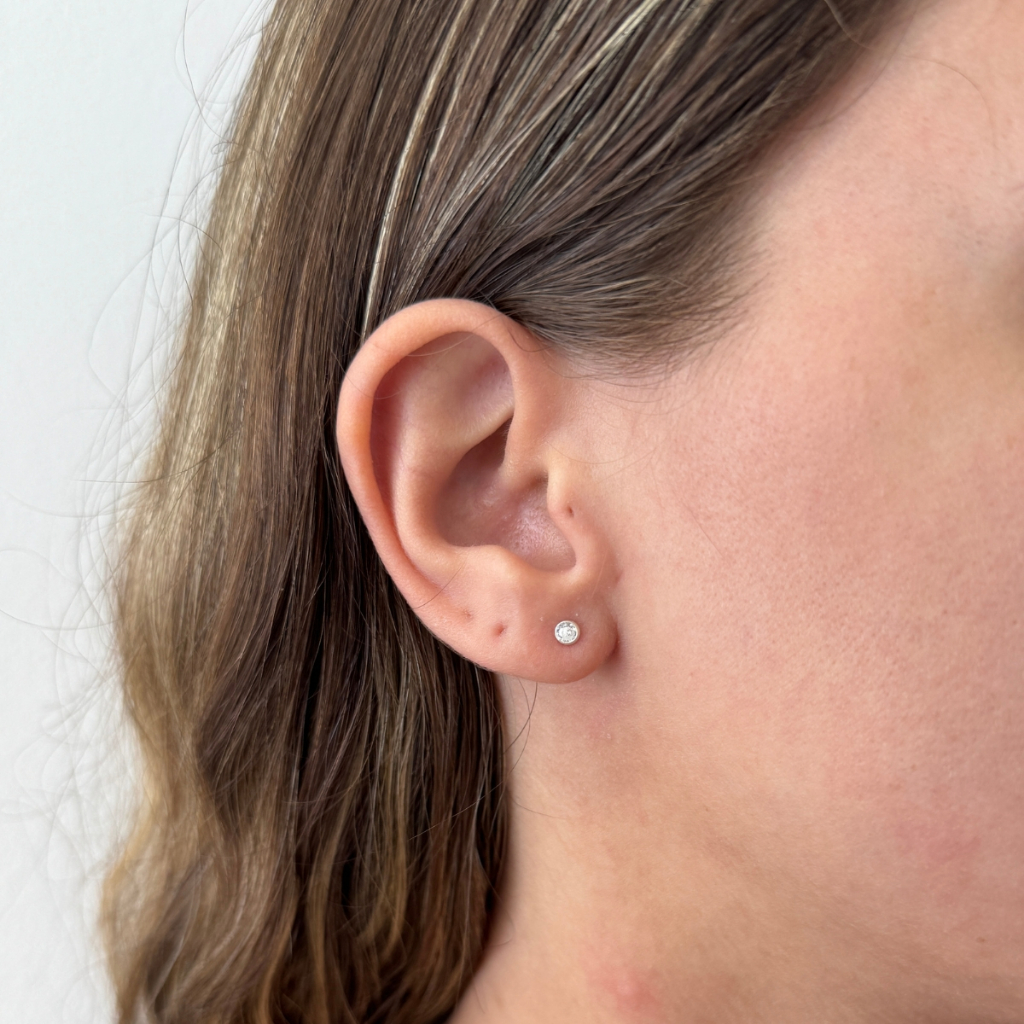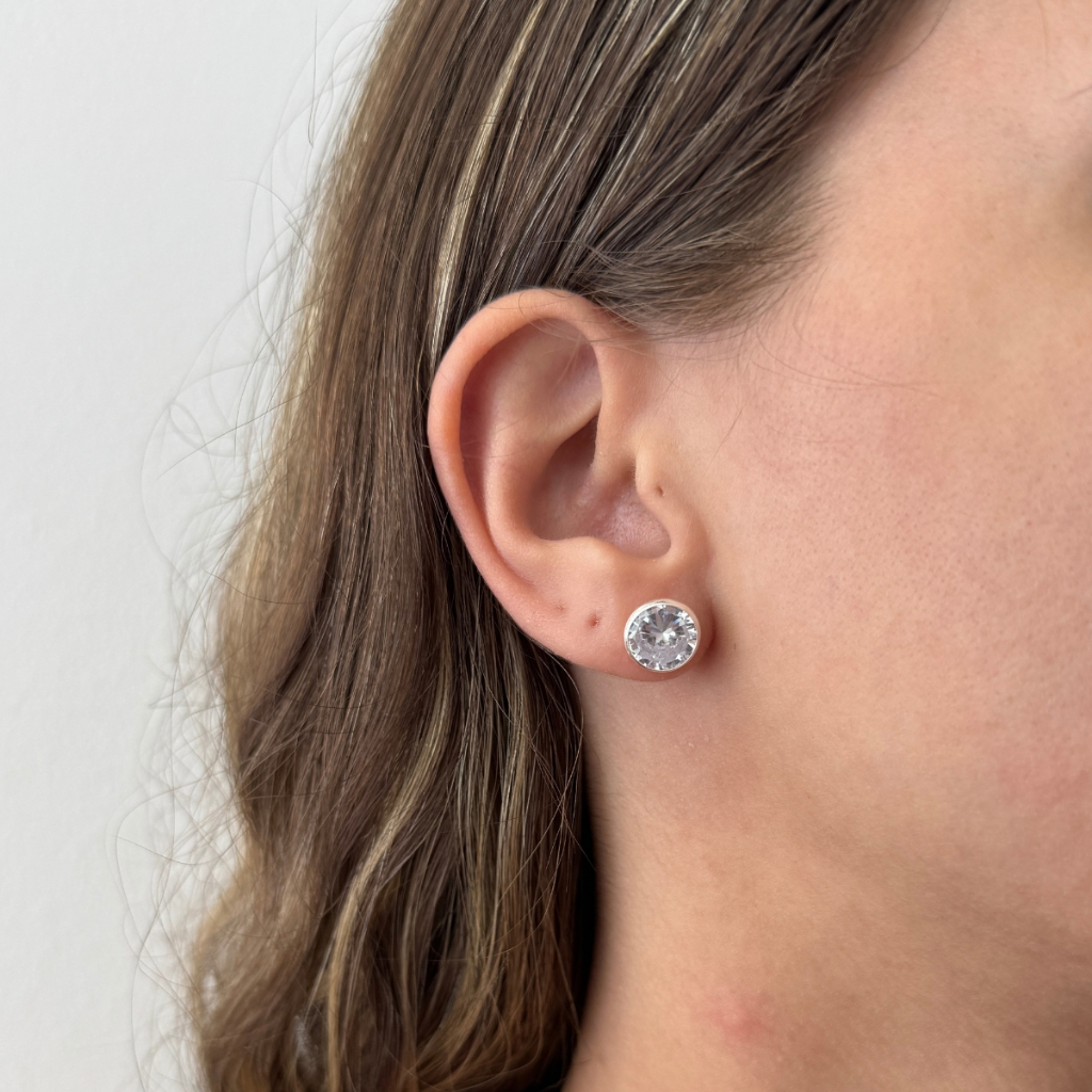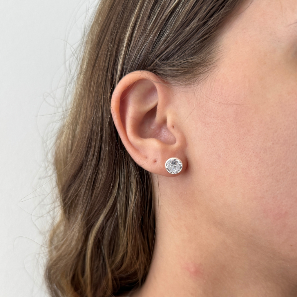Brinco Ponto de Luz Feminino e Masculino Prata 925 Legítima Pedra Zircônia Embutida