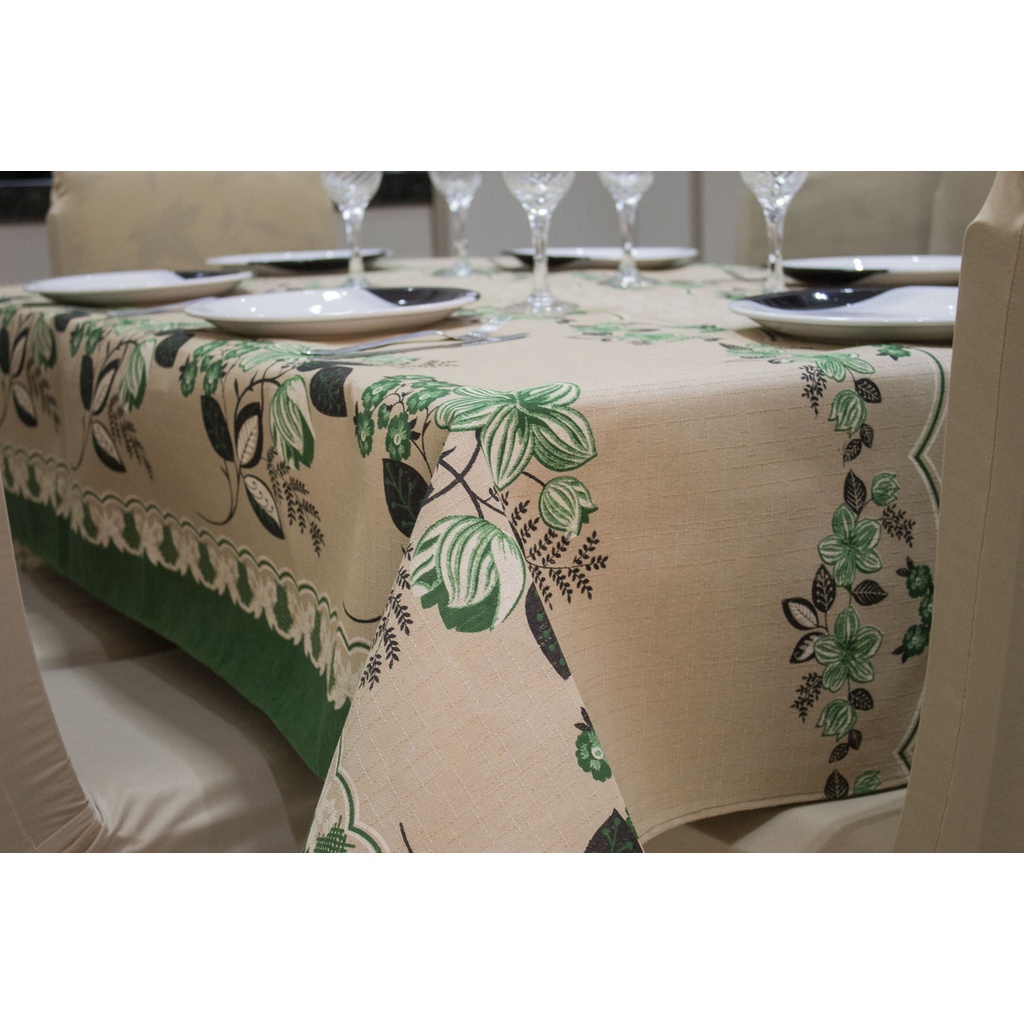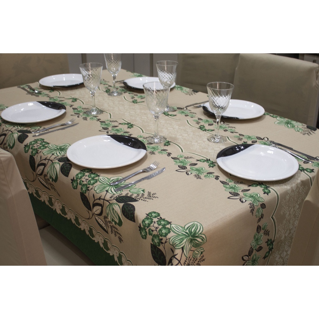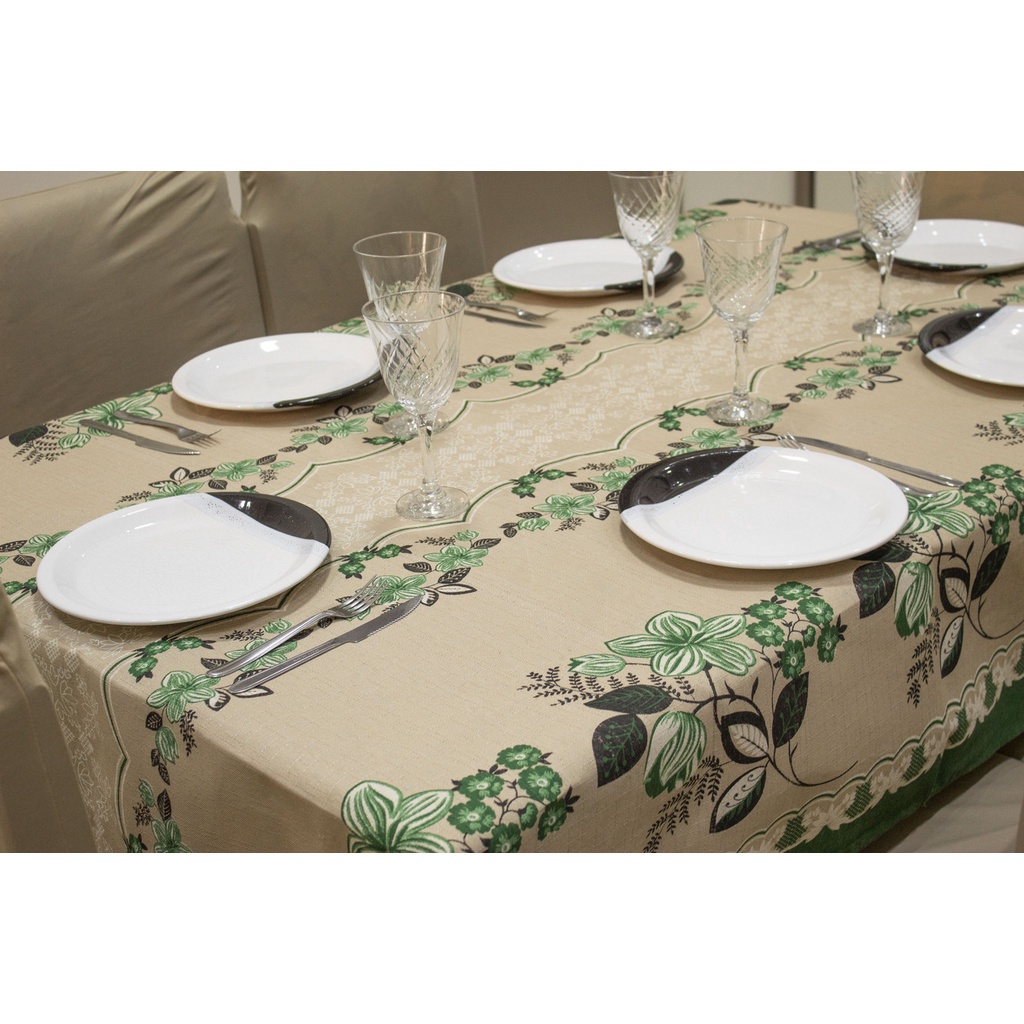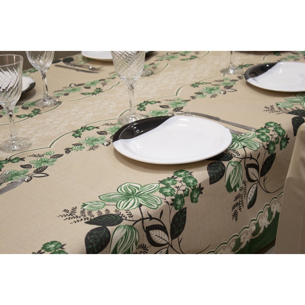Toalha de Mesa Linhão Rústico 10 Lugares 3,00 x 1,45 - Flores Verde