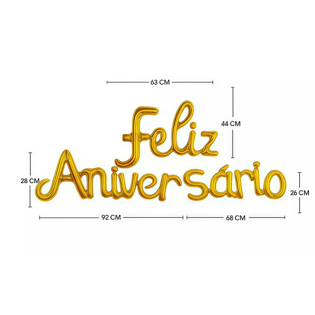 Balão Metalizado Feliz Aniversario CURSIVO Decorativa HAPPY BIRTHDAY decoracao enfeite
