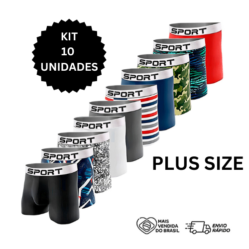 Cueca Plus Size GG1/GG2/GG3 Kit c/ 10 Unidades Boxer
