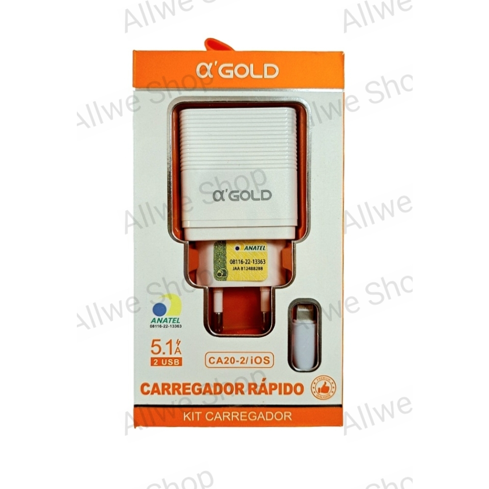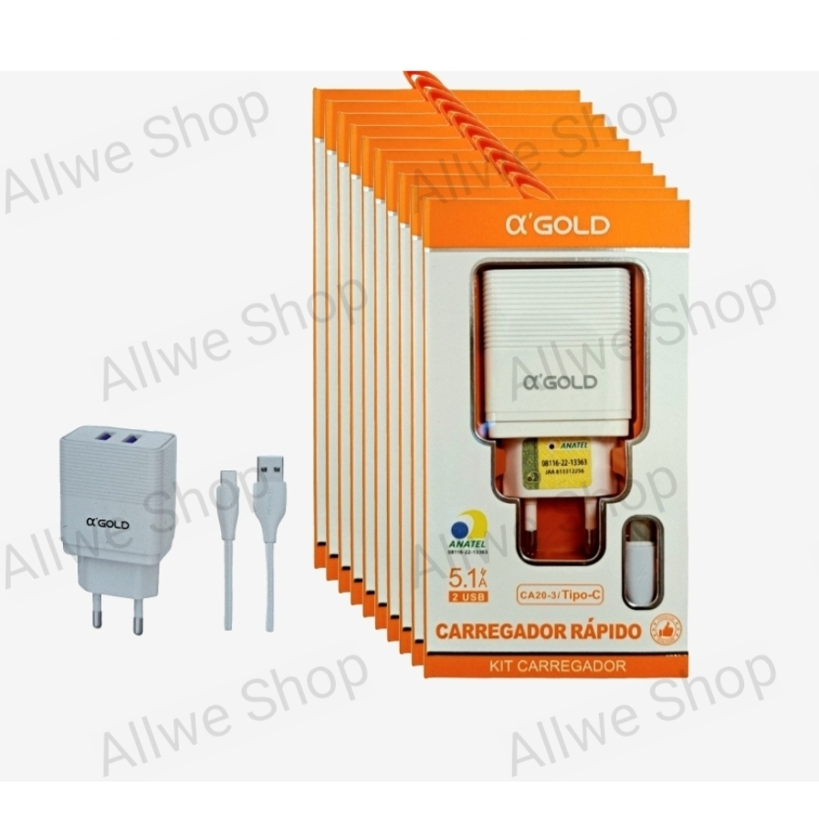 Kit 10 Carregador de celular a`GOLD Original Para Android V8, IOS,Tipo-c C 5.1A 2USB