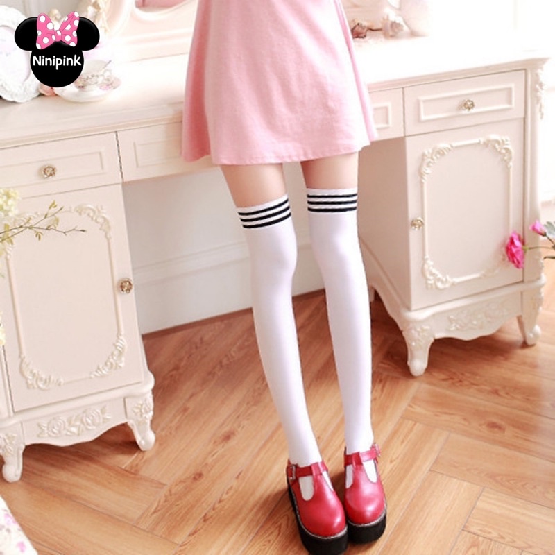 Meia 7/8 Gato/Colegial Geek Cosplay Pin Up Lolito (Preta/Branca)