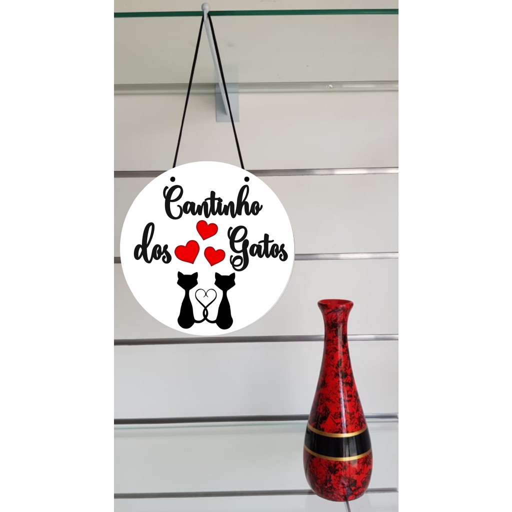 Placa Redonda Decorativa em Mdf Adesivada Vinil 25x25cm Cantinho dos Gatos