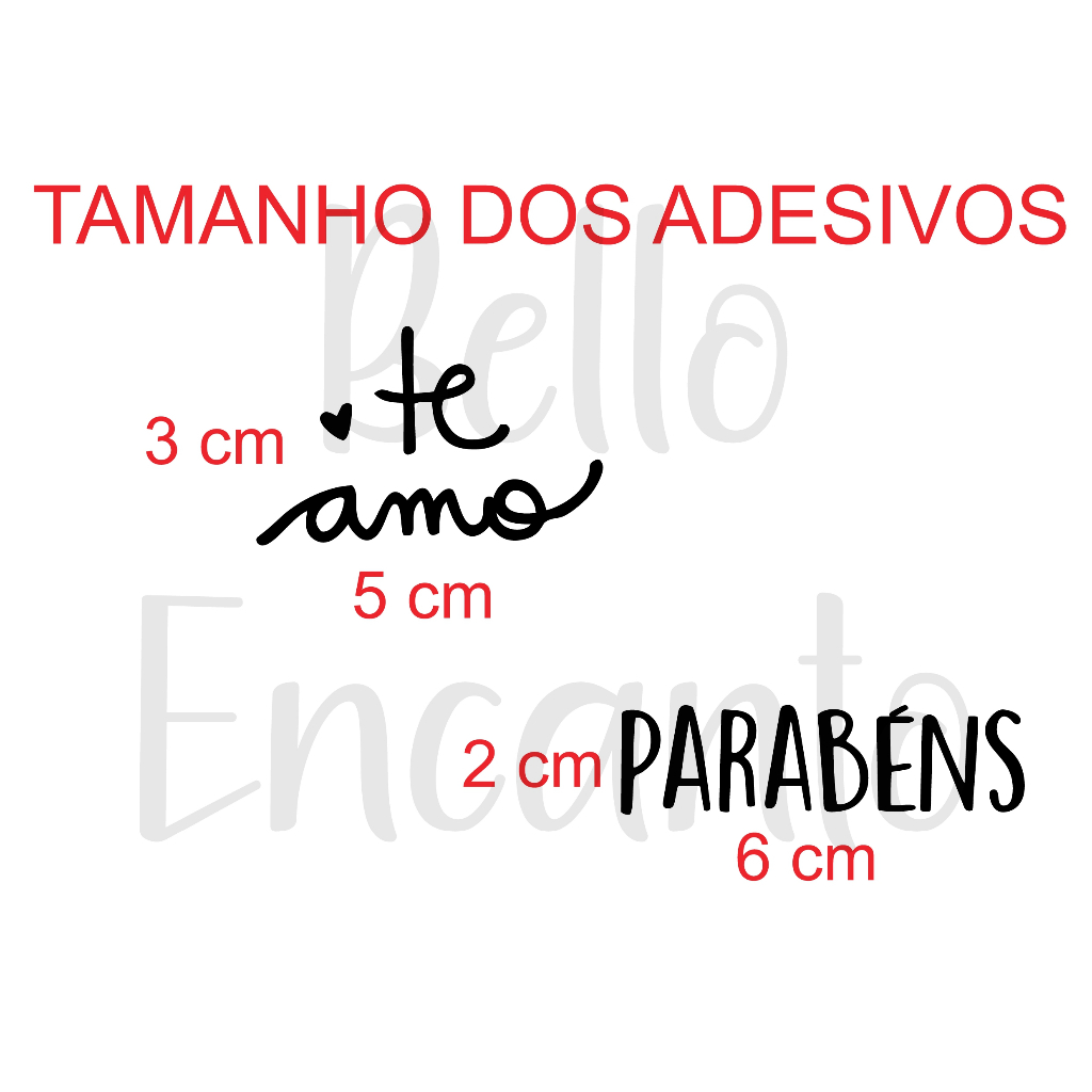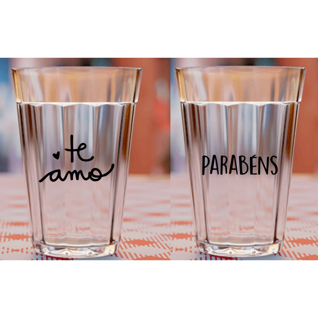 Kit 24 Adesivos em Vinil Para Canecas, Copos, Xícaras, Pratos, Vidro, MDF Te Amo e Parabéns