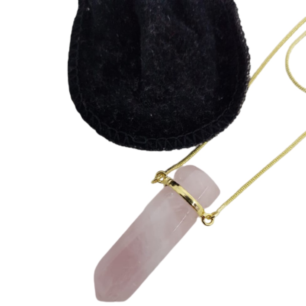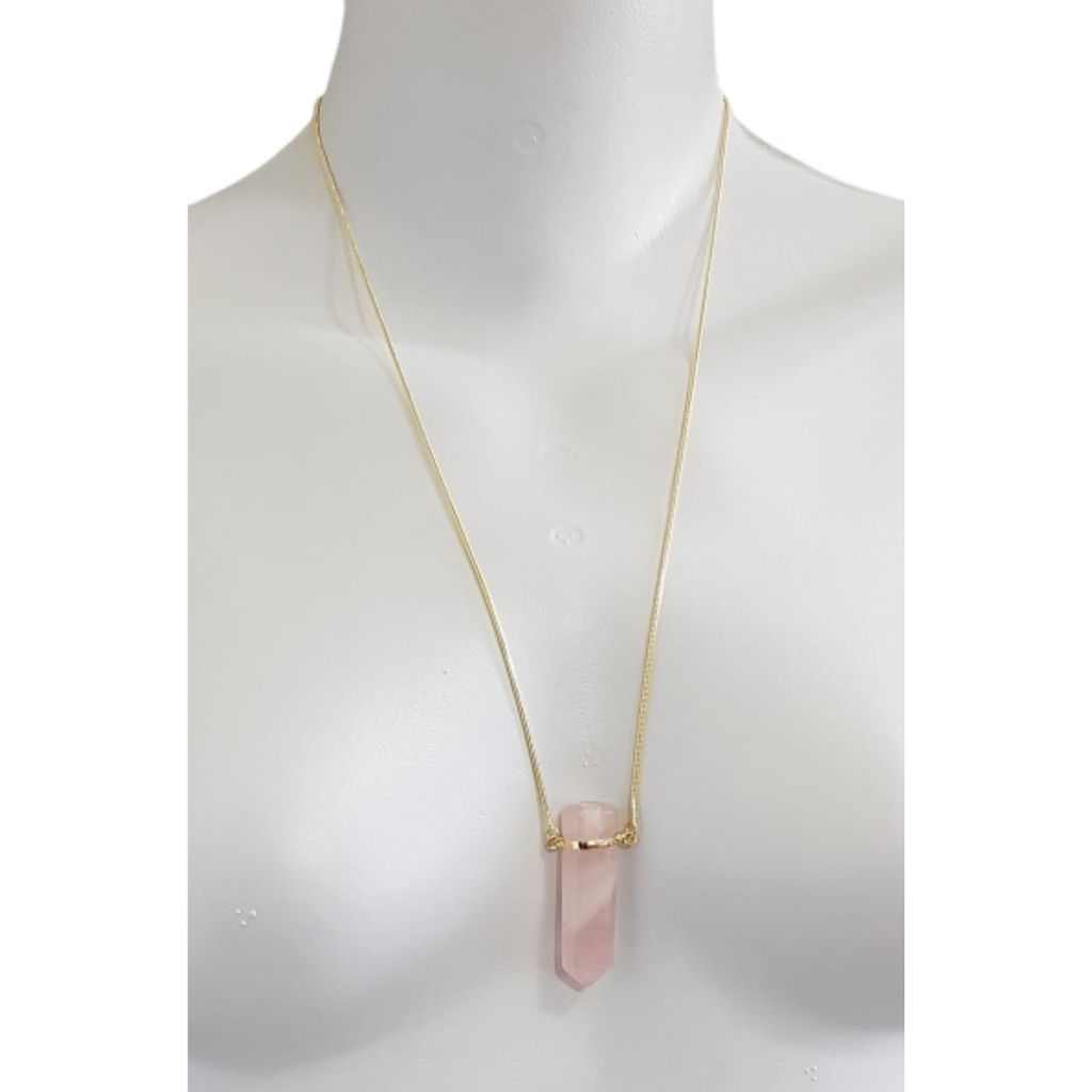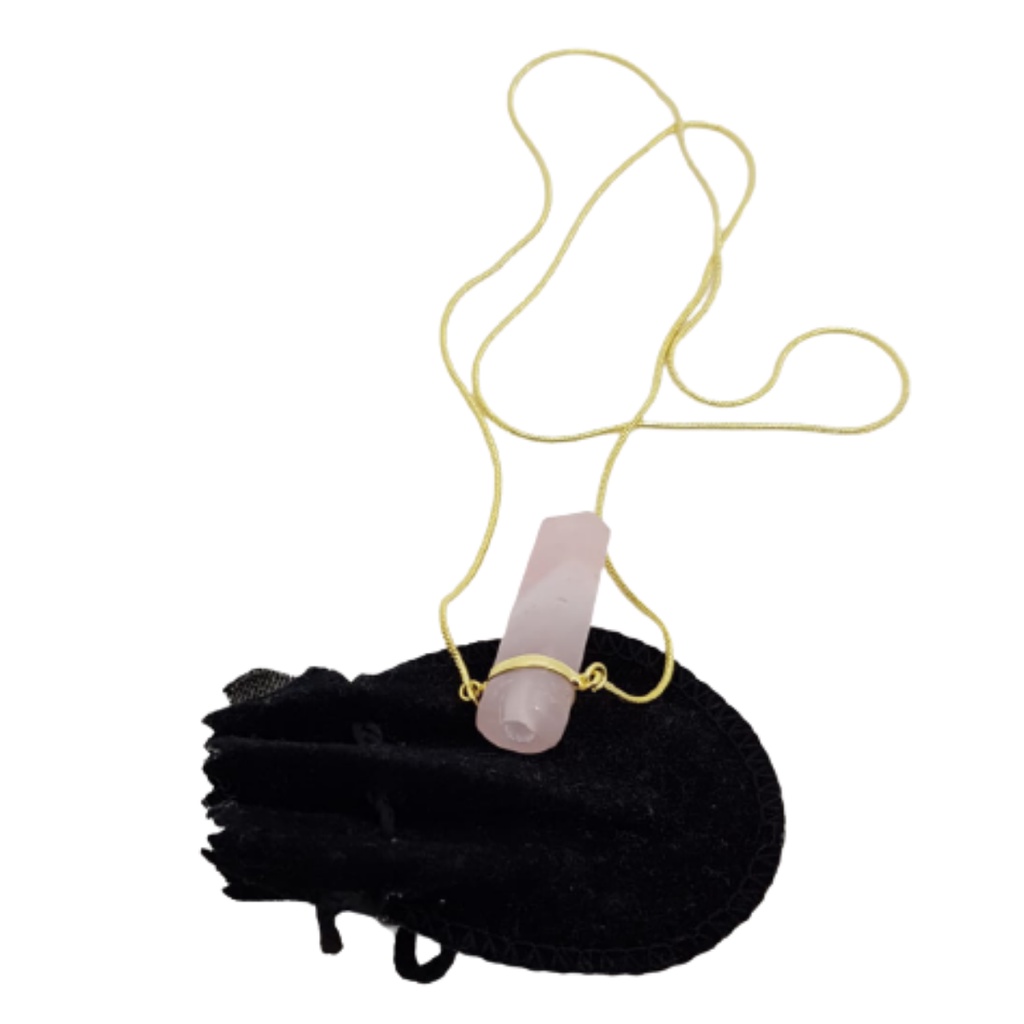 Colar Perfumeria Ou Difusor Pessoal Para Aromaterapia Em Pedra Natural Quartzo Rosa