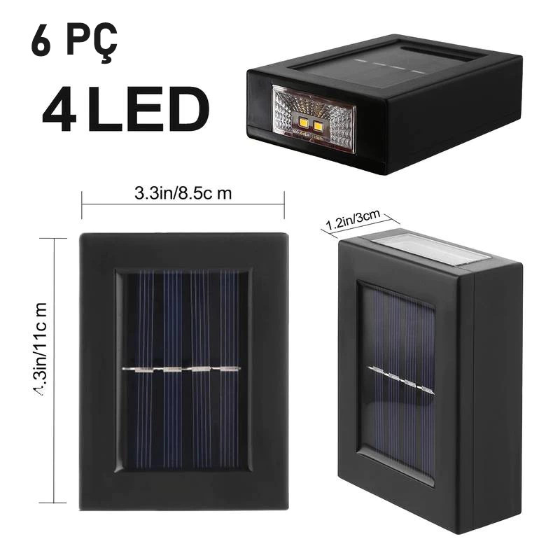 KIT 1/2/4/6 Luminária Solar De Parede À Prova D'água Para Jardim Muro E Varanda Led Spot