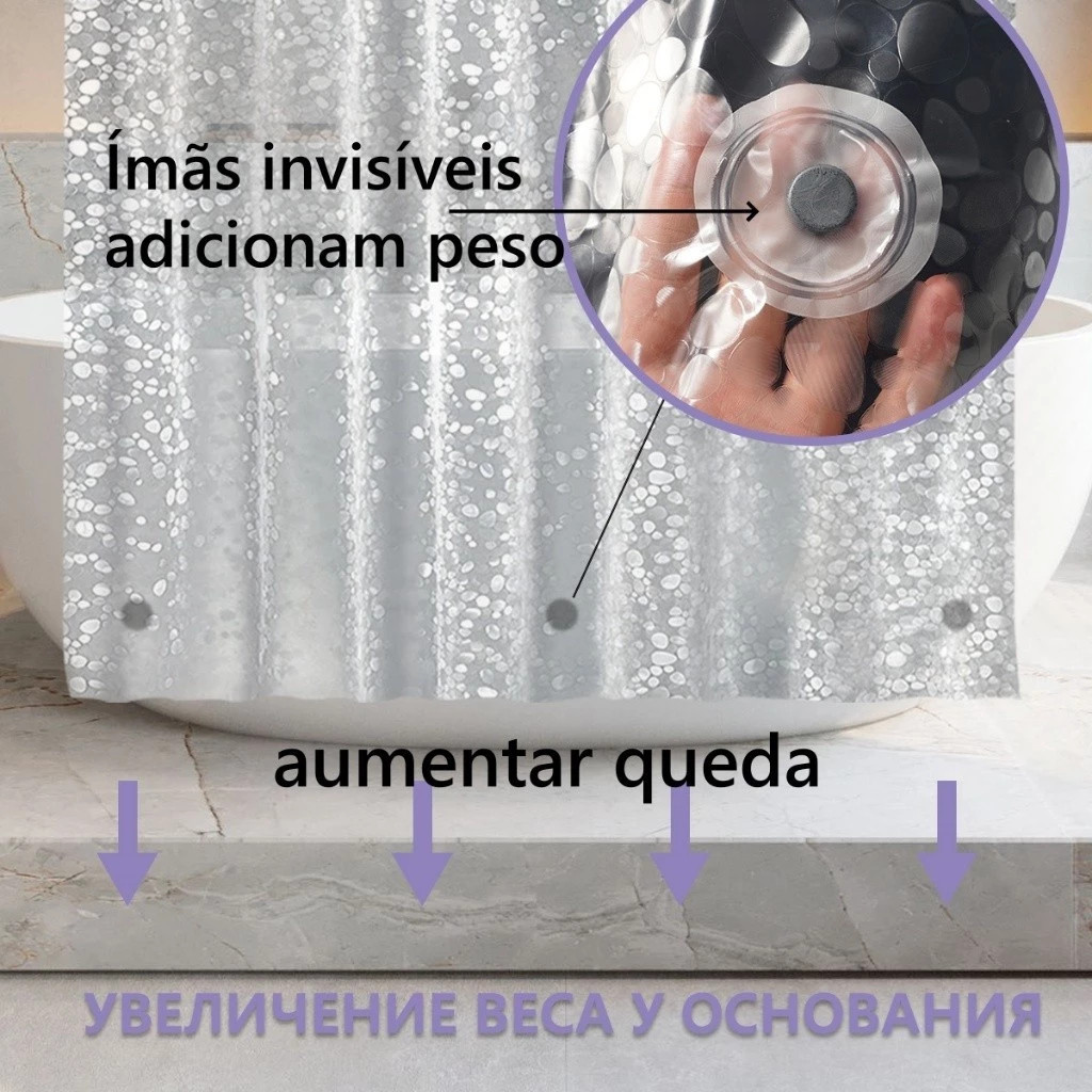 3D Com ímã Cortina de Box para Banheiro c/ ilhós Anti Mofo Resistente Alta Qualidade 100%PVC 2mx1,8m