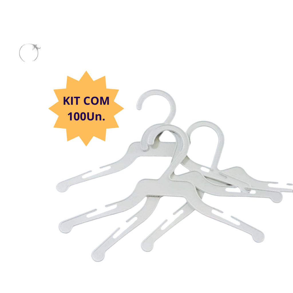 Kit 100 Cabides Infantil Baby Branco Para Roupas de Bebê e Pets