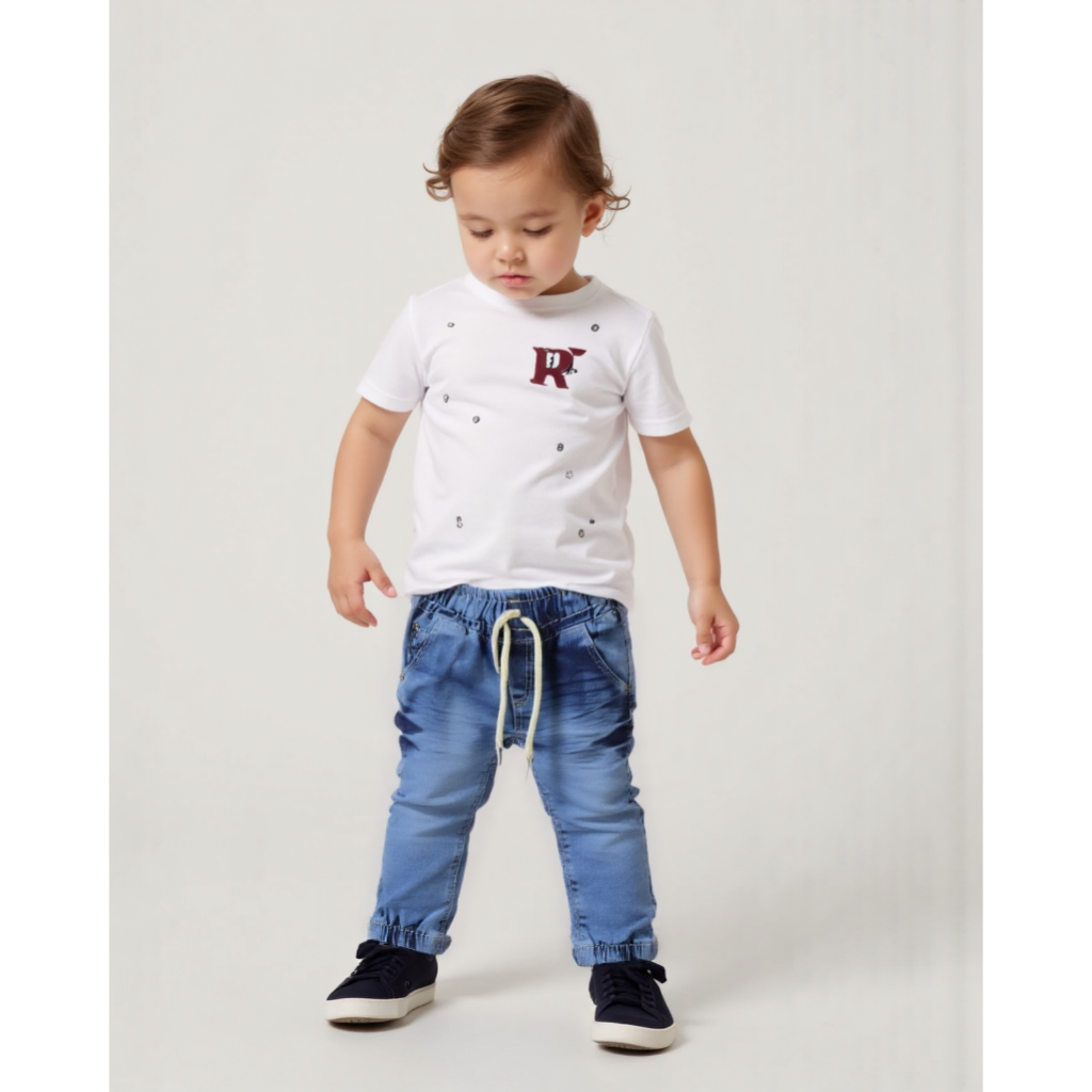 Calça bebe jeans e de sarja menino com laycra 0 a 12 meses